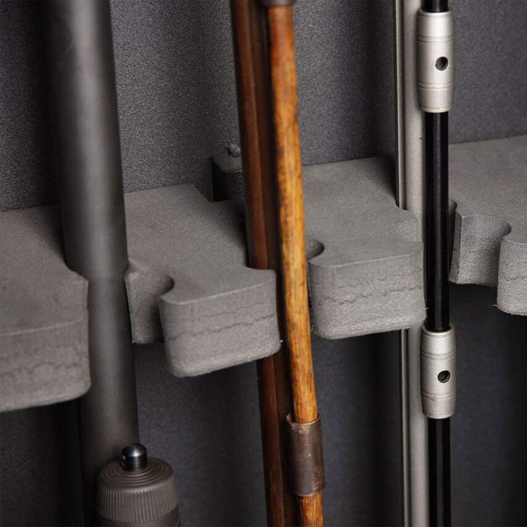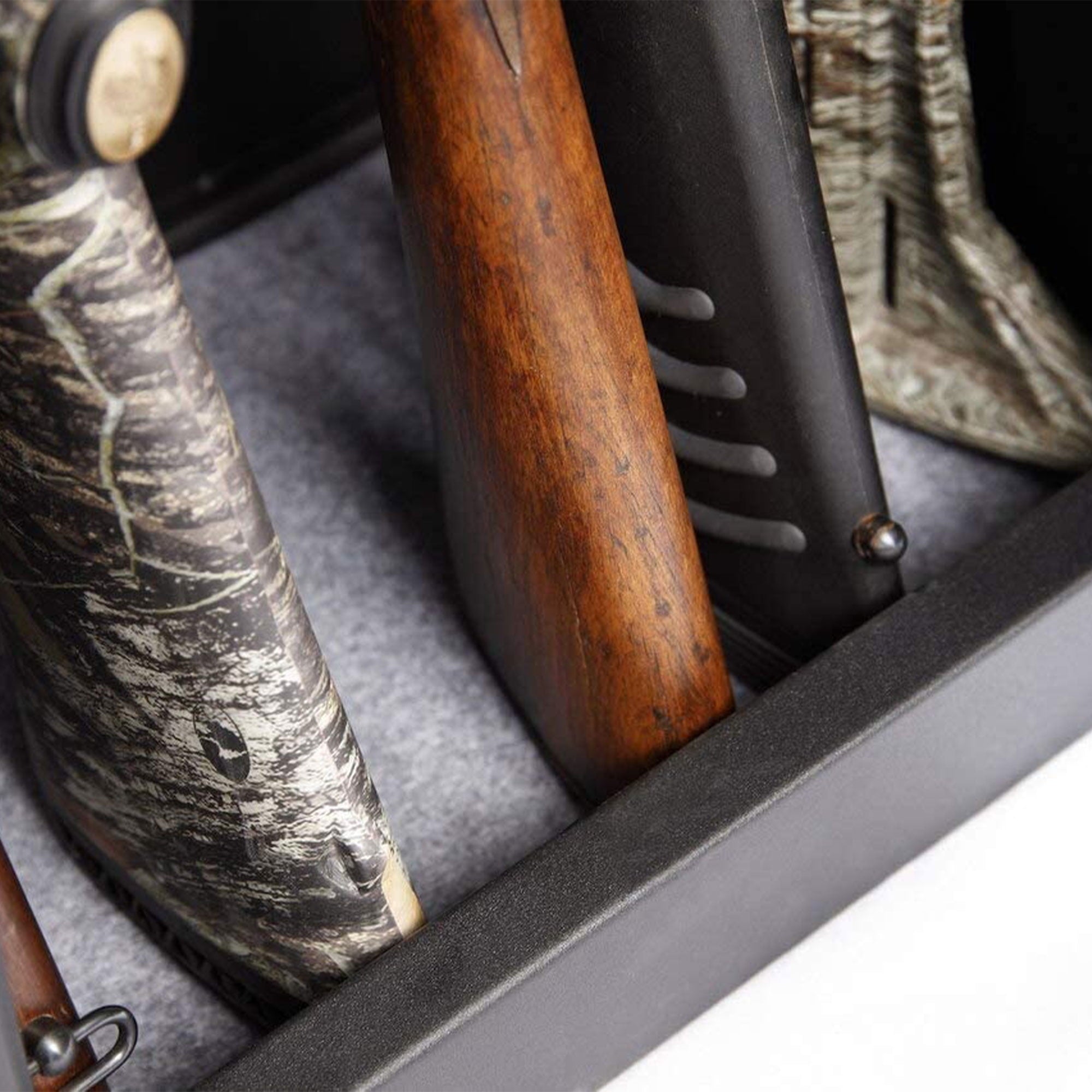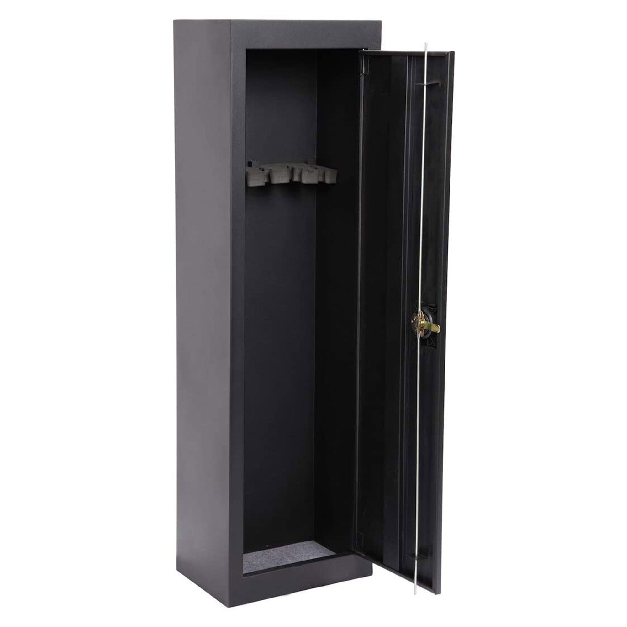 - b>Store up to 5 long guns safely-/b> With a soft foam barrel rest and carpeted floor the gun safe cabinet holds up to 5 long guns providing ample storage space while protecting your firearms from scratches.