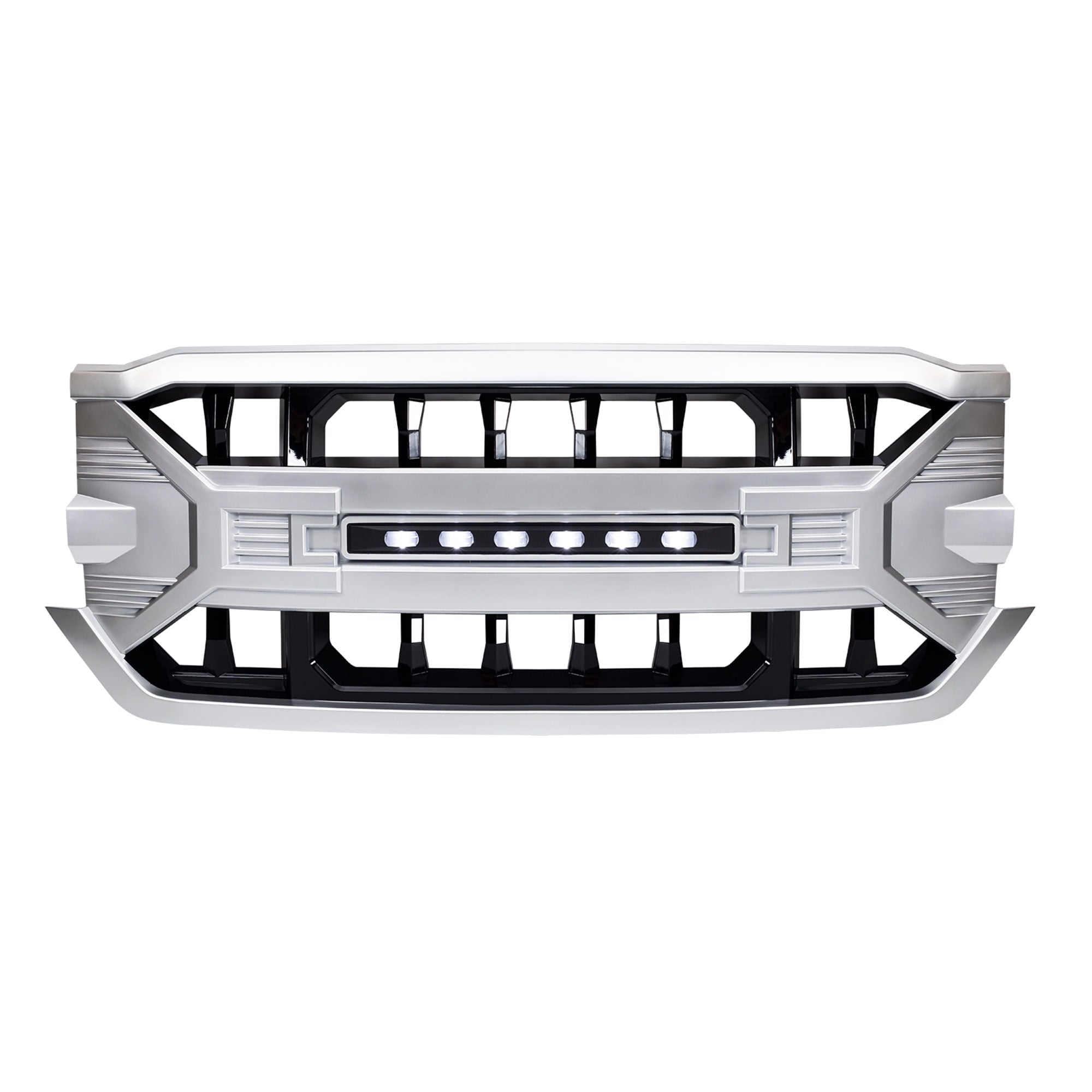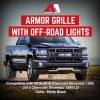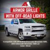 Featuring an integrated LED light bar, the Armor Grille is perfect for off-roading adventures. These LED off-road lights not only give your truck a unique appearance but also significantly improve visibility at night and in poor weather conditions, ensuring safer driving experiences. Designed with a mesh pattern, the grille promotes optimal airflow to cool down the radiator and engine while also preventing debris from damaging internal components during your drives. This functional design ensures your truck remains in peak performance, whether on city roads or rugged trails.
