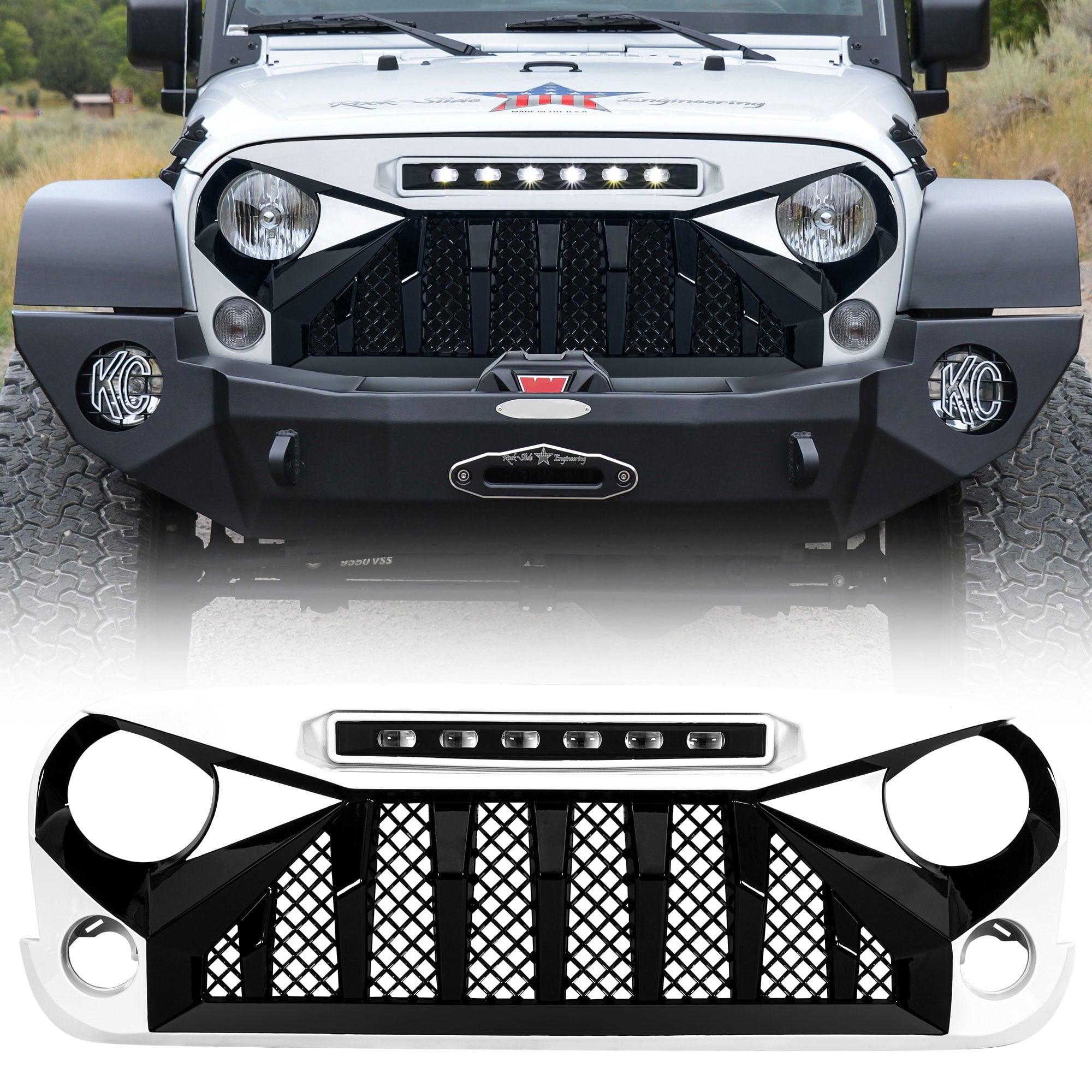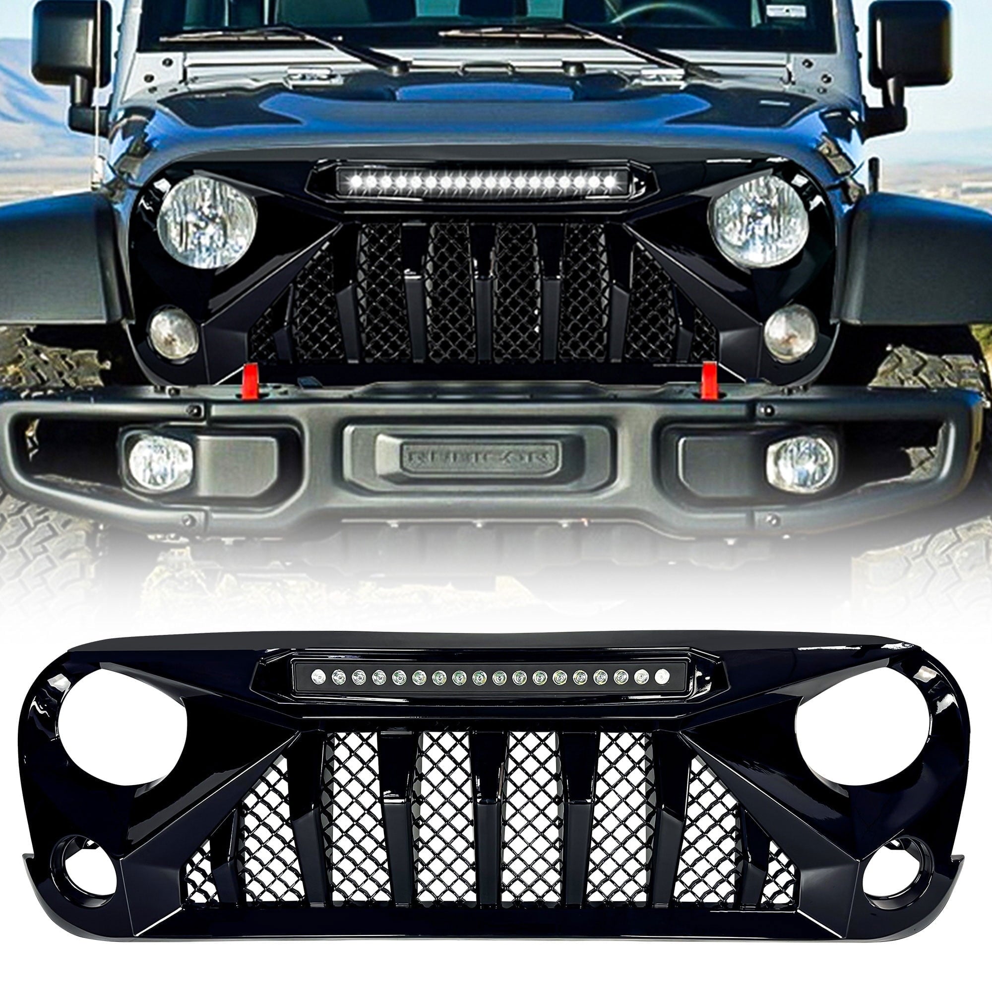 - Grille with LED light bar for added off-roading illumination; Looks great with a stark, menacing, innovative design
