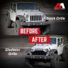 Before heading to an ultimate off-roading adventure, get the AMERICAN MODIFIED Gladiator Vader Front Grille to amp up your gear, enhance your safety, and redesign your vehicle.