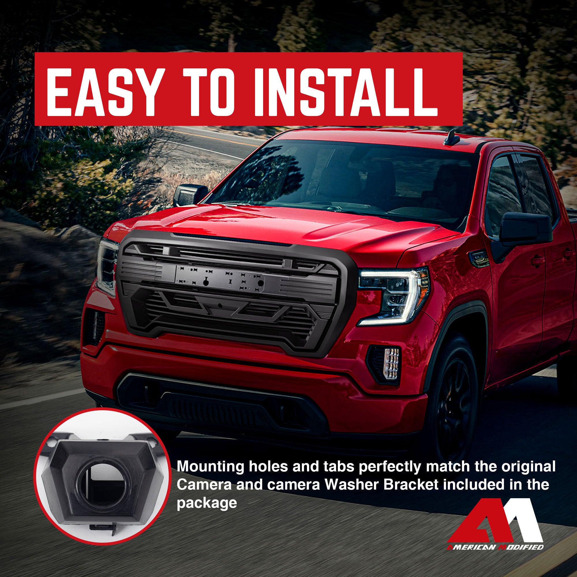 Installation is quick and easy, with no modifications needed. Using the factory push pins and mounting points, you can easily install this grille in as little as 15 minutes with basic hand tools. This accessory is compatible with 2019, 2020, and 2021 GMC Sierra 1500 Base, SLE, & SLT with a camera and comes with a camera bracket for ease of use.