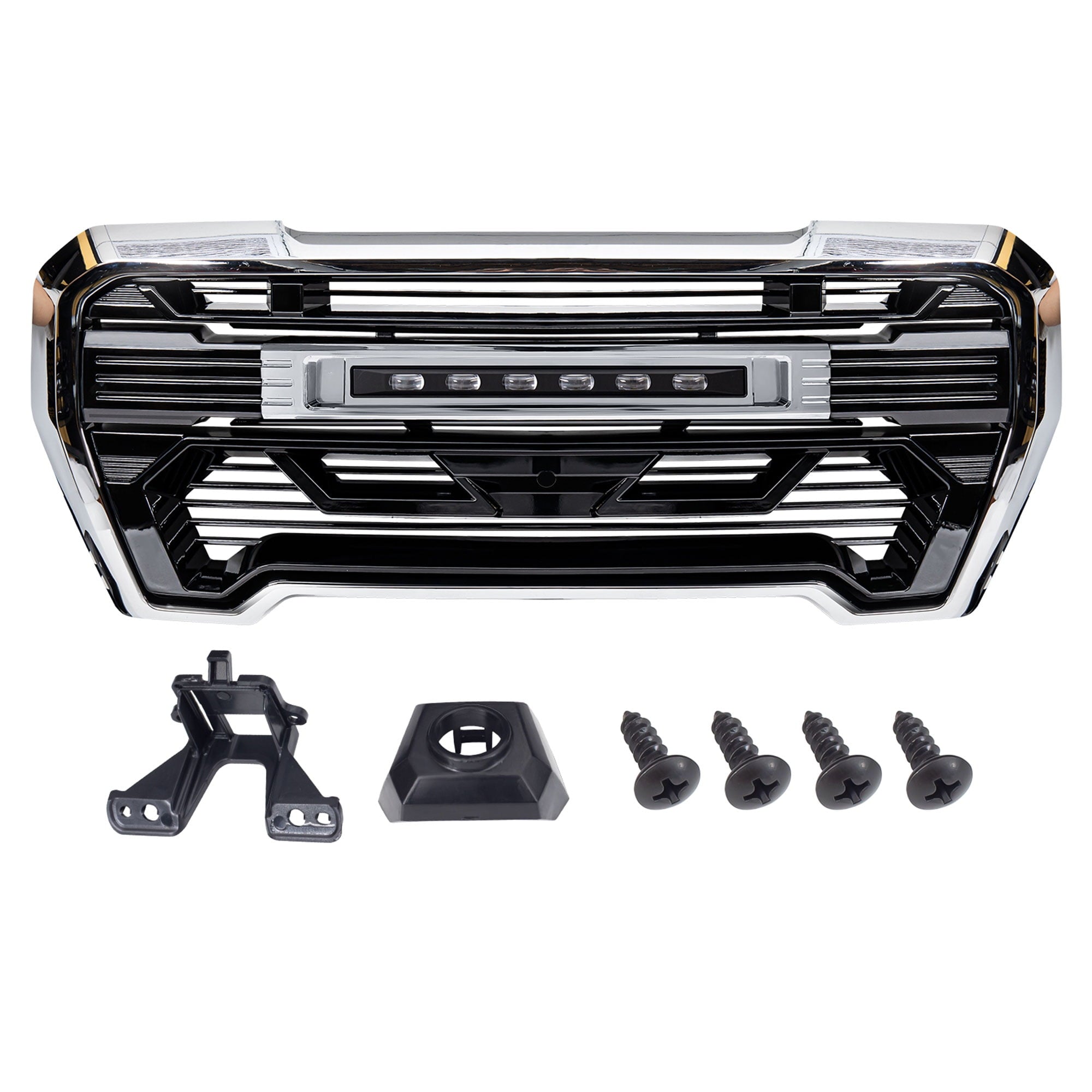 - Designed for quick installation, the grille uses factory push pins and mounting points, requiring no modifications and only basic hand tools