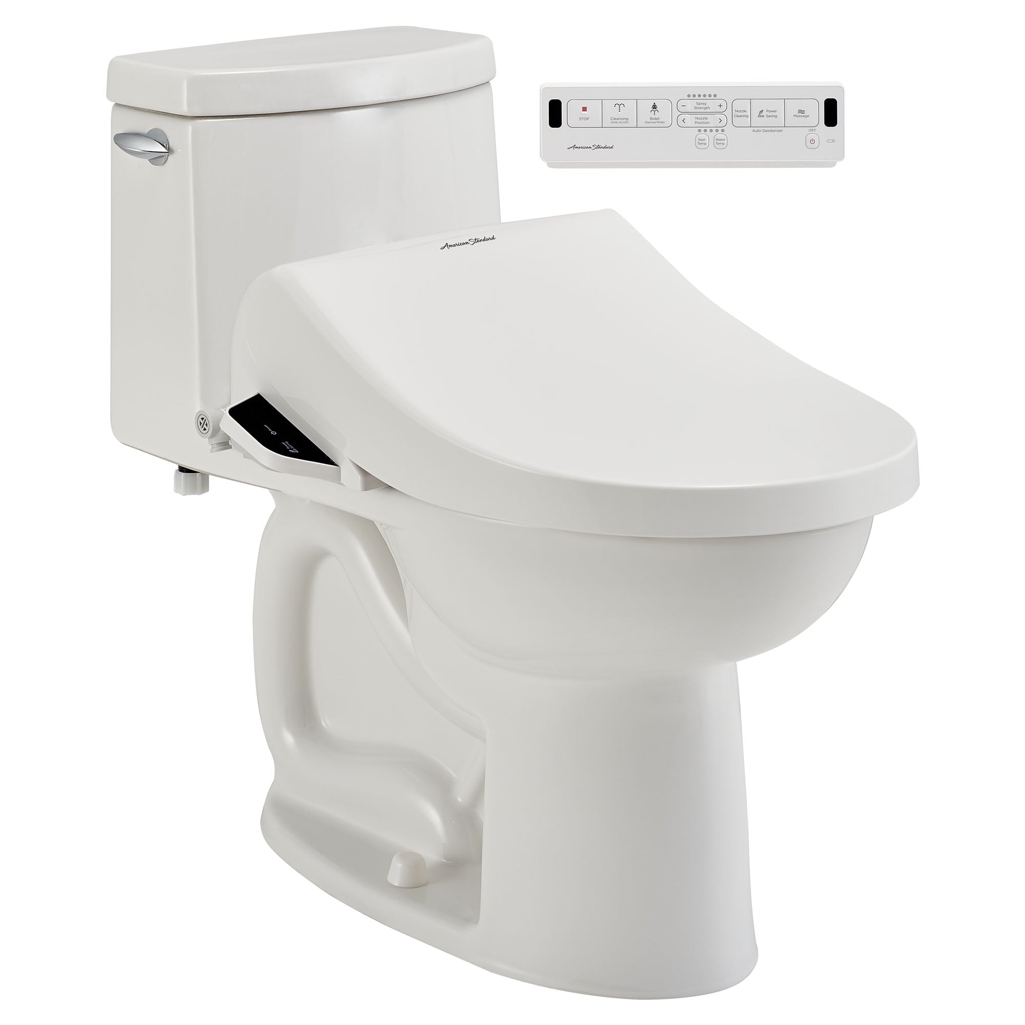 Personal hygiene redefined. The Advanced Clean AC2.0 SpaLet® Bidet Seat from American Standard brings a new standard of cleansing – you can now enjoy superior personal hygiene and luxurious comfort right in your own home. The remote control makes it easy to access all of the cleansing and comfort features, from the heated seat, to the water massage. Convenient features such as a slow-close lid and a self-cleaning nozzle provide piece of mind. With customizable settings, you’ll find yourself feeling clean and rejuvenated with every use, while independent front and back cleansing brings improved hygiene to your most intimate areas.