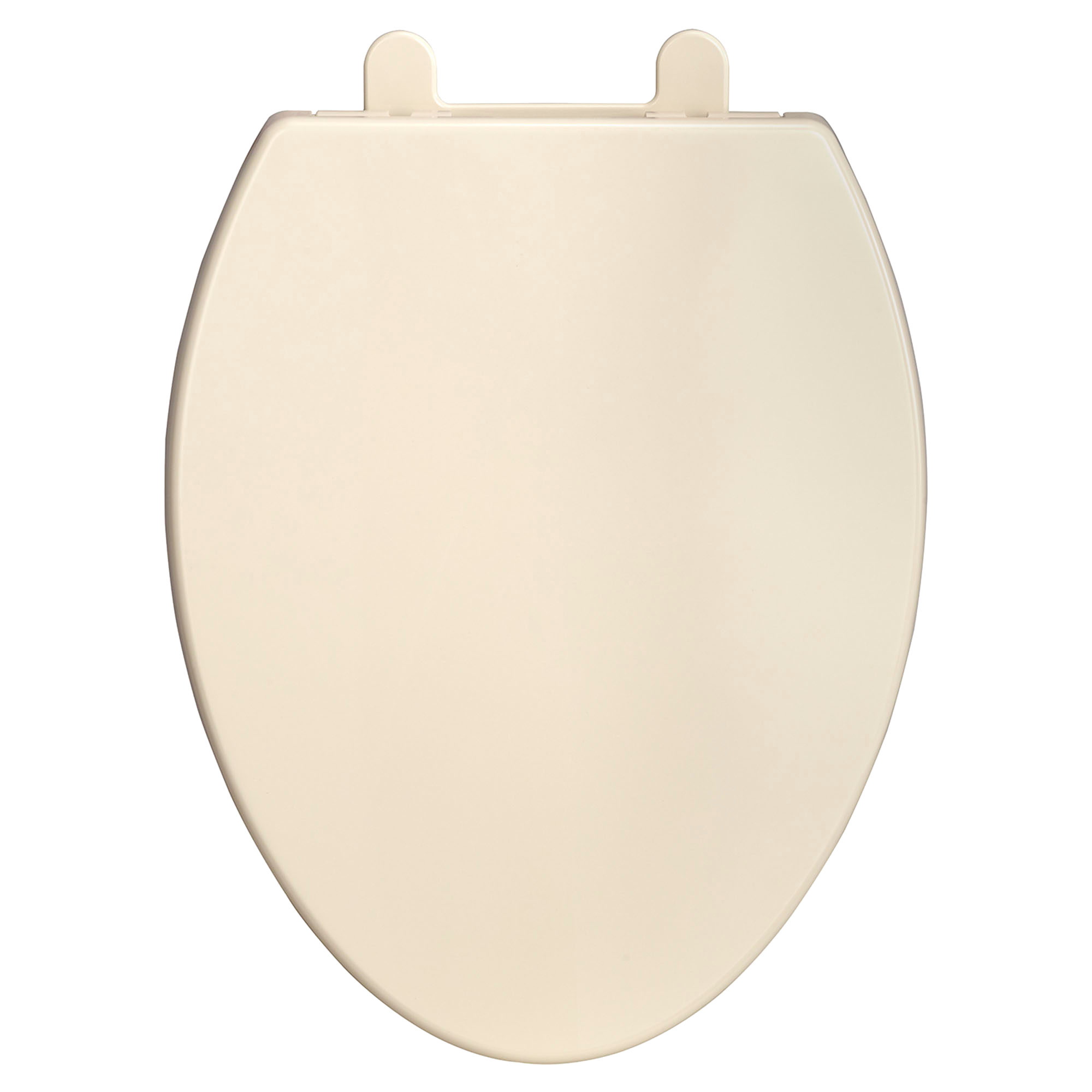- Traditional styled solid toilet sear with cover can be installed from either the top or bottom of the toilet bowl