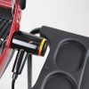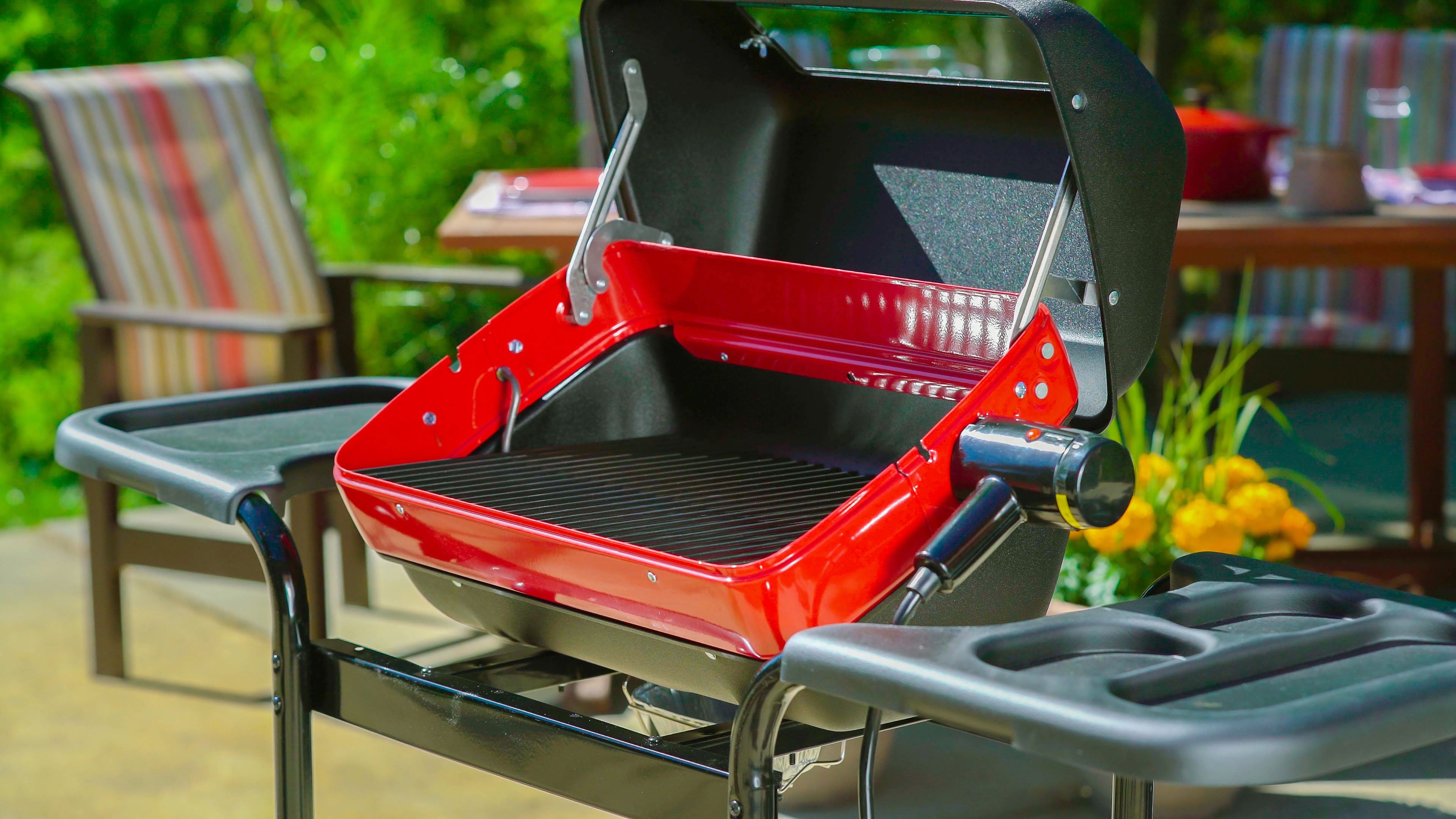 I AM A REAL BBQ GRILL! DO NOT USE ME INSIDE! REAL BBQ flavor with the ease and safety of electricity! No charcoal mess, no heavy propane tanks, just amazing BBQ flavor. And try adding hickory, apple, cherry, or mesquite wood chips to infuse your recipes with maximum BBQ flavor! Better heat control than charcoal or propane is achieved with the total variable temperature Control. The 9300 Series offers the “Best of the Best” in electric grilling with features like a 3-Position Heating Element and an optional Rotisserie Grilling Veggies, Fish, and Poultry is a breeze. The unique Reflector Pan design and 1,500-watt heat source generate temperatures needed to handle the thickest steaks and chops! Meanwhile, the stay-cool handle keeps your hands safely away from the grilling action. The Durable high-temperature finish looks great on decks, patios, or a balcony. And 200 sq. inches of cooking surface lets you “grill-it-up” for groups large or small. All this, and the safety of a UL and CUL listed heating element that plugs into any standard household outlet. The Resilient-Deluxe 9350 Americana Electric Grill features easy clean-up removable grease cup, a handy see-through window, a sturdy steel cart with wheels, a steel-grid lower storage shelf, and two Side Tables. The large 15.5” x 13.5” Side Tables are constructed of a weather resistant and super-tough ABS Polymer.