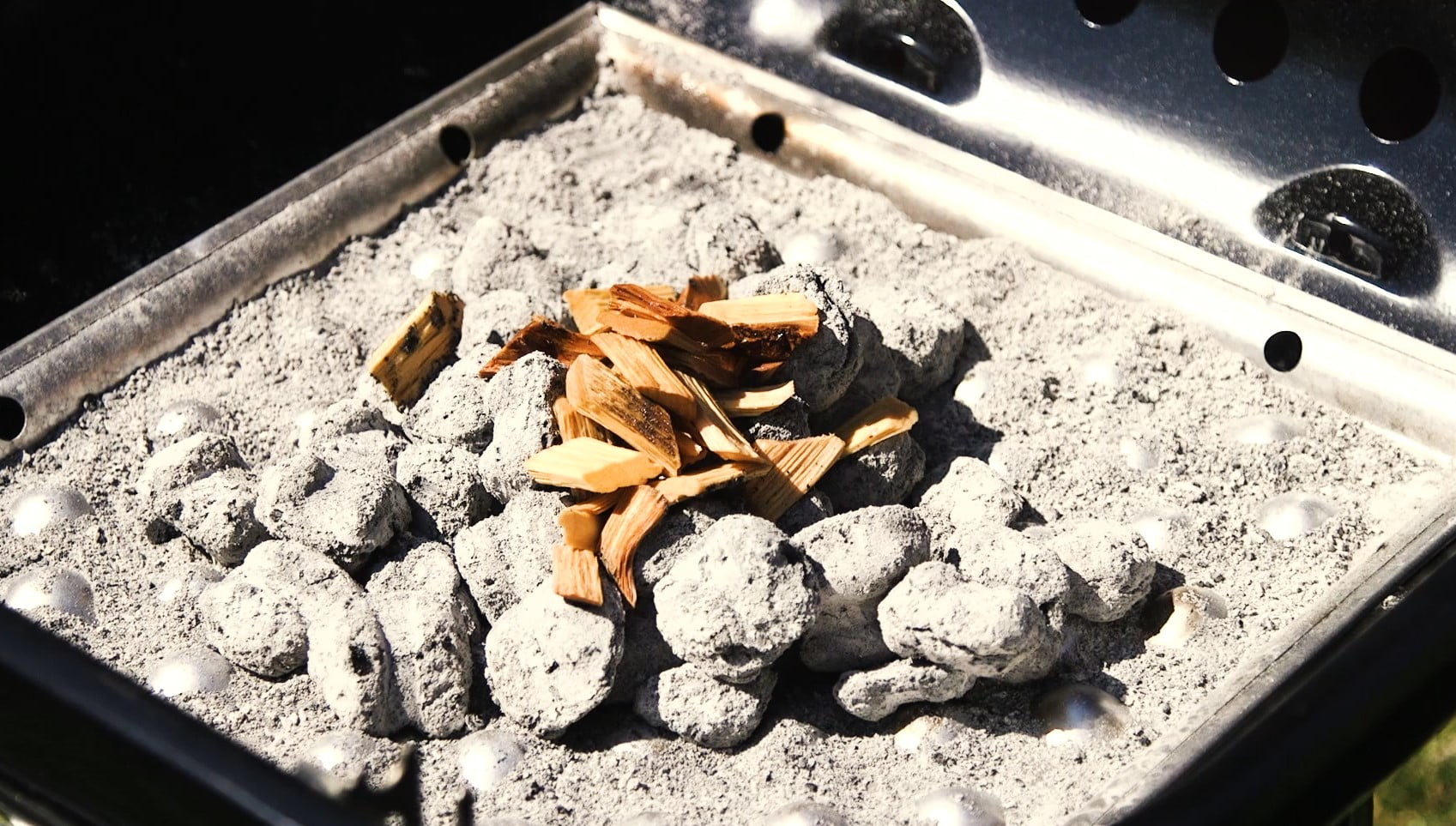 • Adjustable vents in hood and bowl save charcoal and control cooking temperatures.