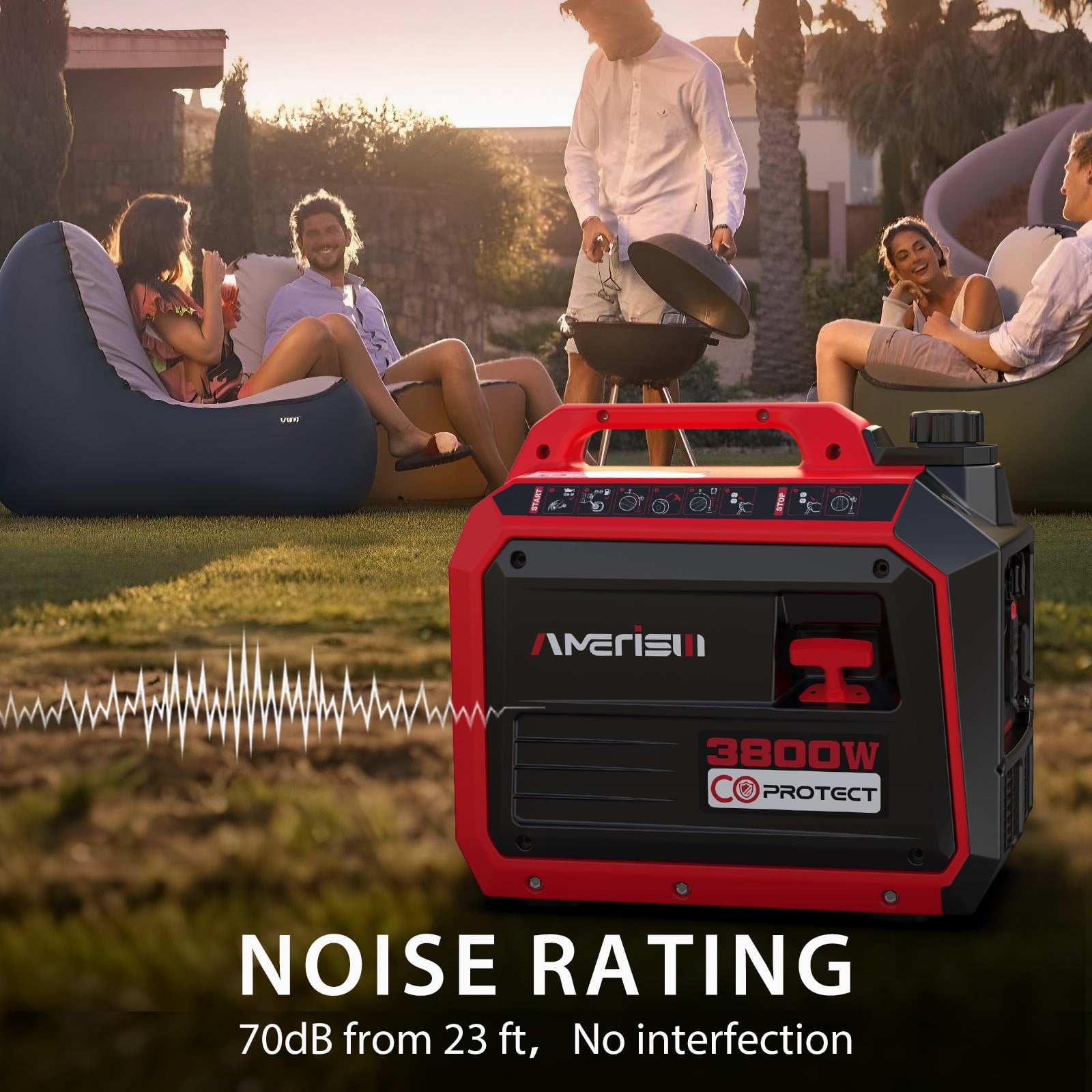 - Ultra-Quiet Operation: Runs at a low 70 dBA, thanks to its double-insulated acoustic enclosure, advanced OHV 4-stroke engine, and efficient muffler, ensuring minimal noise.