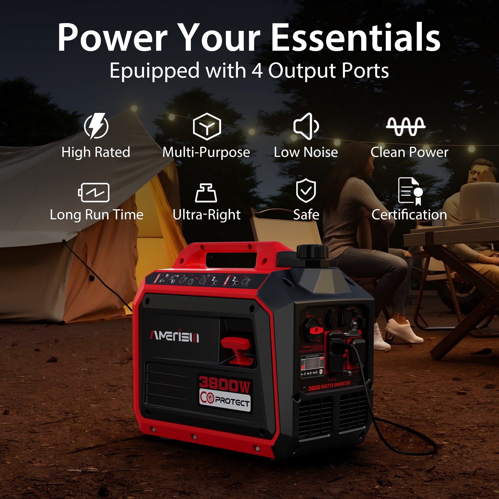 - Reliable Power Output: Delivers up to 3,800 peak watts and 3,300 running watts with clean, stable energy under 3% THD, making it ideal for camping, tailgating, and emergency backup.
