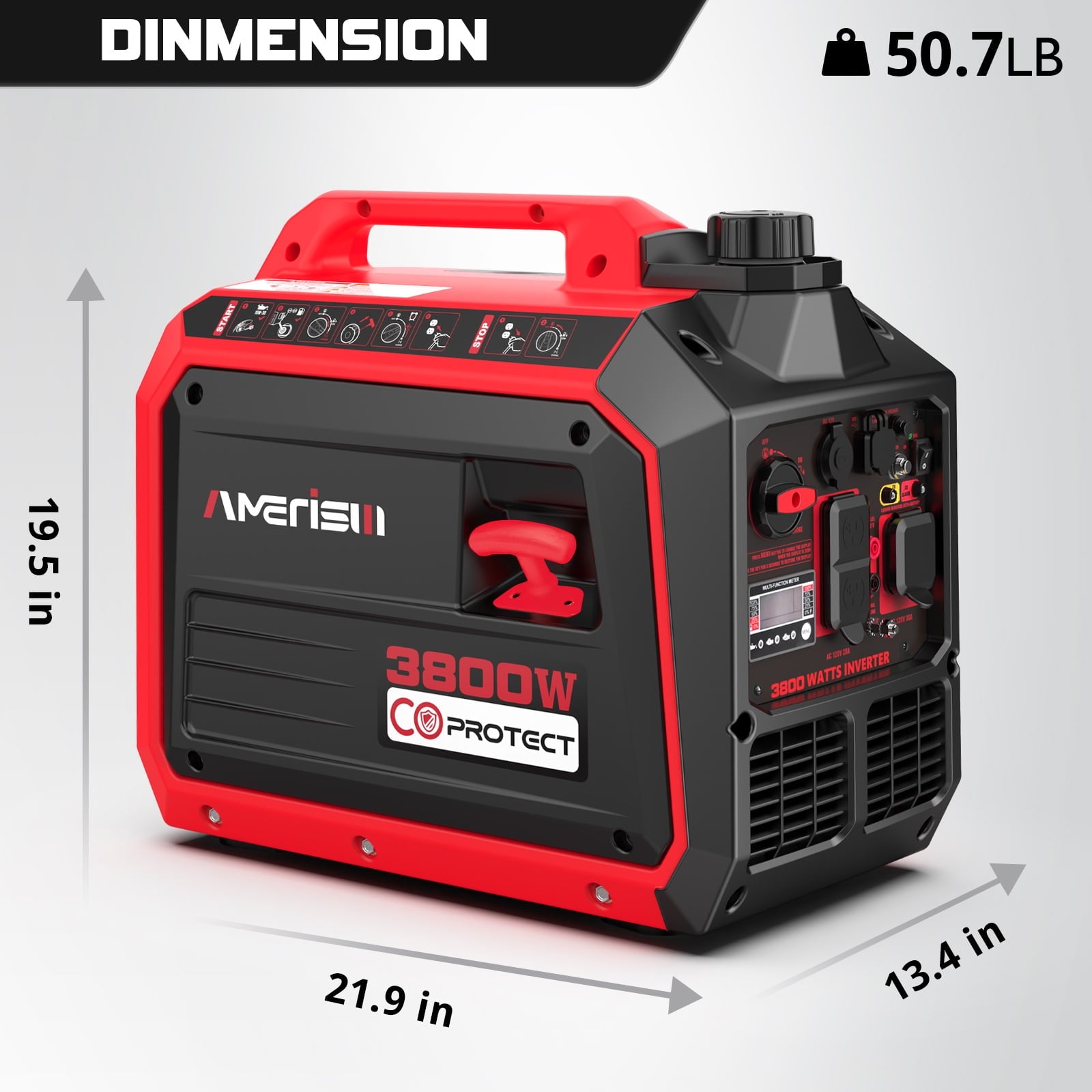 - Portable and Lightweight: Weighing only 50.7 lbs, this compact generator is designed for easy carrying and transport, perfect for outdoor use.