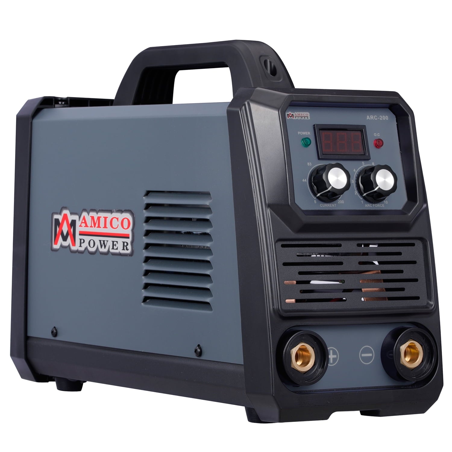 ARC-200 is a professional Stick Arc with Lift-TIG welding machine using the advanced inverter technology. The welding power source can provide a stronger, more concentrated and more stable arc. When the stick and work-piece become shorter, the response will be faster. This means it is easier to design it as a welding machine with different dynamic characteristics, and it can even be adjusted as needed to make the arc softer or harder. Specifications: Model: ARC-200; Rated Input Voltage: AC 100~250V; Frequency: 50~60Hz; Rated Input Power: 230V/8.2KVA/35.7A & 115V/5.8KVA/50A; Current Range: 230V/5~200 Amp & 115V/5~145 Amp; Force Current: 0~50 Amp & 0~10 Amp; Rated Duty Cycle, 230V: 80% @ 200 Amp & 115V: 80% @ 145 Amp; Nominal DC Open Circuit Voltage: 83V; Usable Electrode, 230V: 1/16~1/4 in. & 115V: 1/16~5/32 in.; Power Factor: 0.93; Dimension: 15.75 x 6.2 x 11.3 in.; Net Weight: 17.0 lbs.; Packaging Size: 18.0 x 9.5 x 12.5 in.; Packaging Weight: 24.0 lbs. Packing List: ARC-200 Pro. Stick Arc Welding Machine; 8-feet Power Cord & 6-50P plug (on the machine); 230V to 115V Power Adapter; 300 Amp Electrode Holder, 10 feet Cable, 35-50 mm Connect; 300 Amp Work Clamp, 10 feet Cable, 35-50 mm Connect; 2 Pieces Electrode of 3/32 in.; 2 Pieces Electrode of 3/16 in.; Owner’s Manual.Amico ARC-200, Professional Stick Arc Lift-TIG Welding Machine, 80% Duty Cycle, 100-250V Wide Voltage Welder