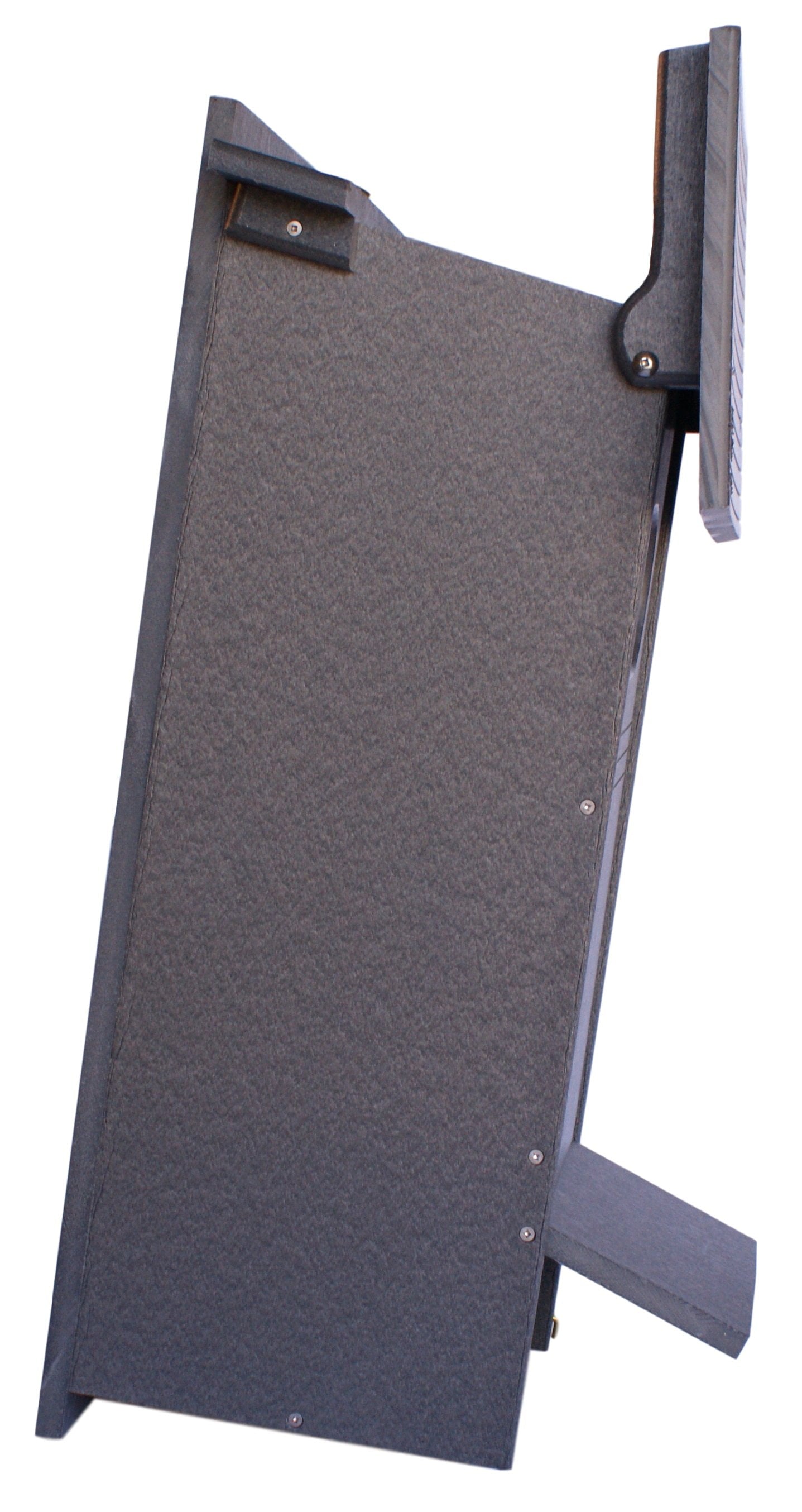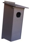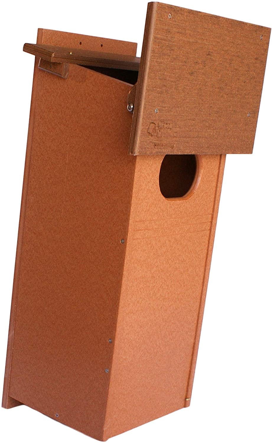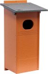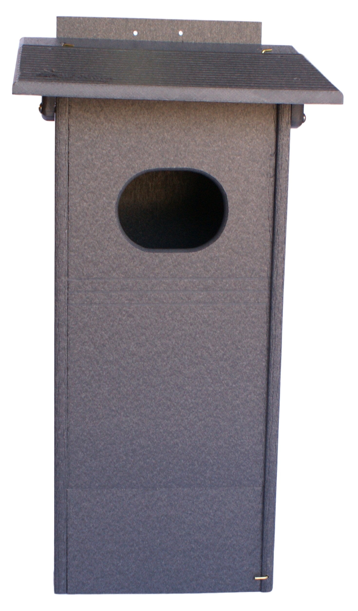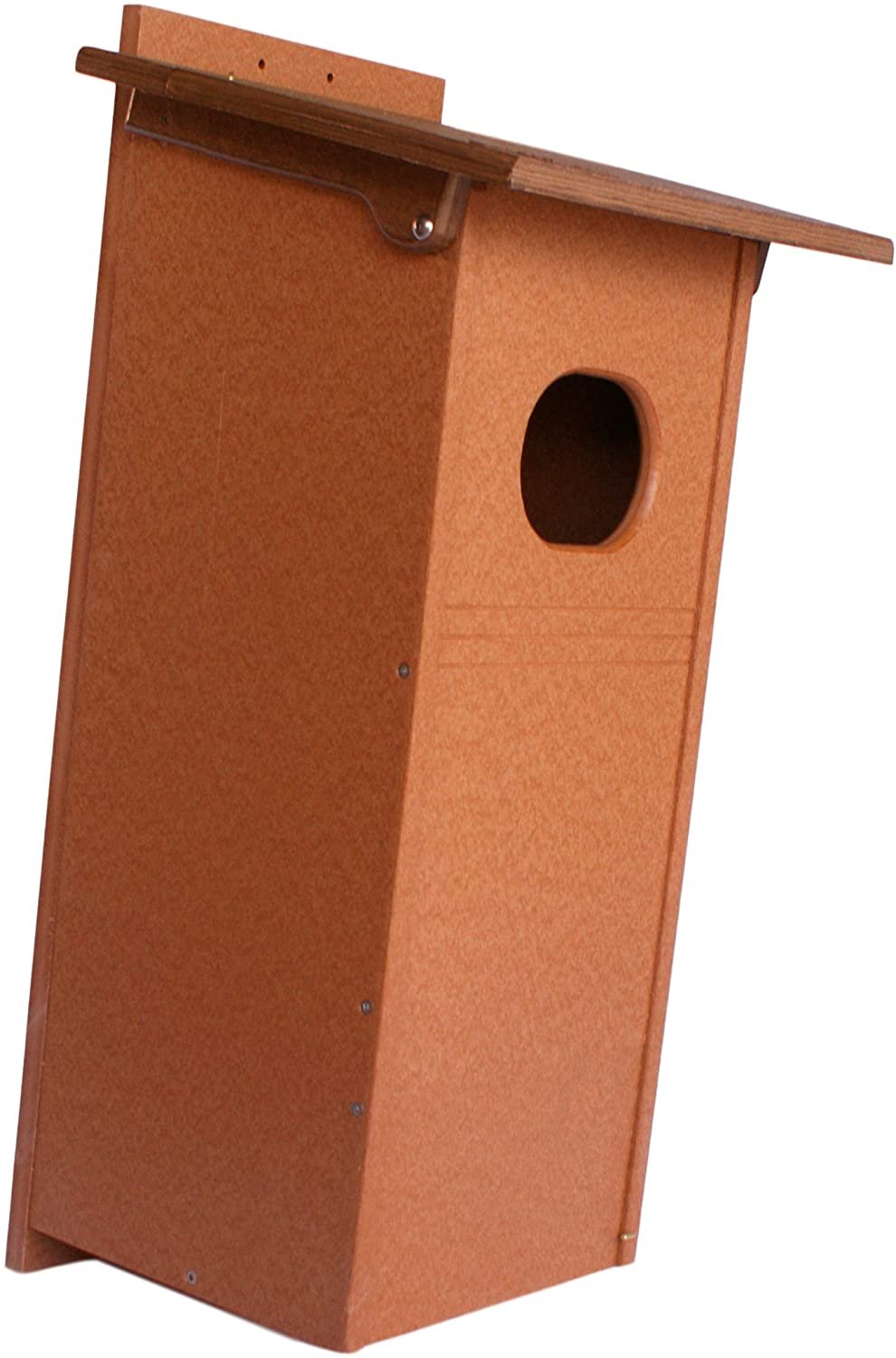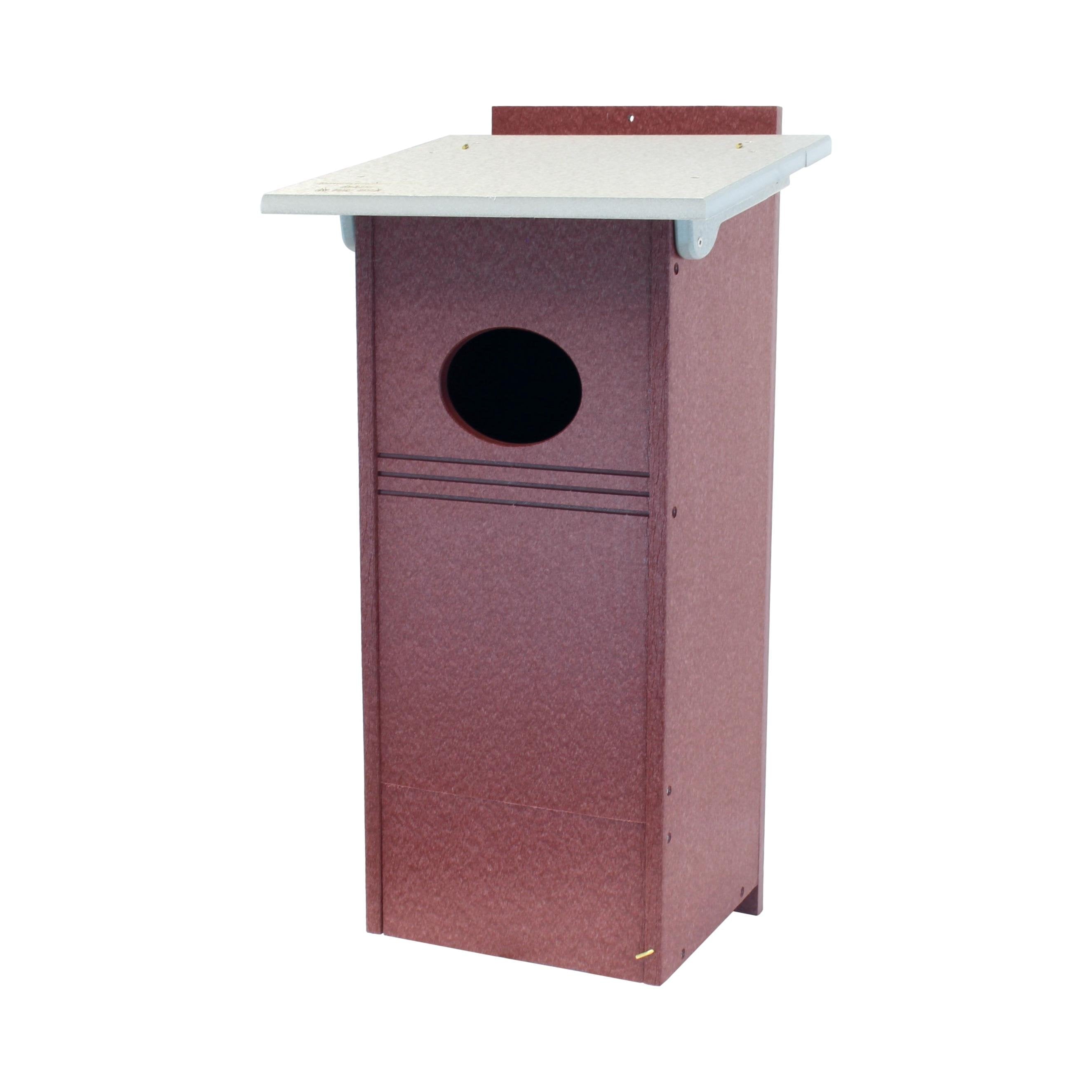 Invite your bird friends to enjoy the comforts of this sturdy bird house! This unique Amish-made bird house is perfect for inviting beautiful Wood Ducks to share your property. Made from 100% recycled material these bird houses are maintenance free. The dimensions of the bird house are 24″H by 12″W by 11″L and the hole is 4″W by 3″H.