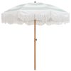 AMMSUN 6.5ft Patio Umbrella UPF50+ with Boho Fringe Tassel Tilt Pole for Outdoor Picnic,Cream White