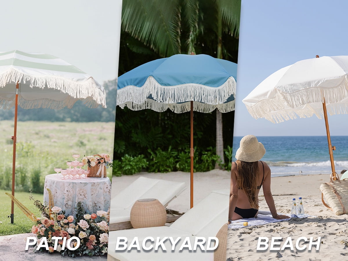 • ELEGANT BOHO FRINGE & VERSATILE – The stylish tassel design adds a fresh look and a unique appearance to any outdoor setting, such as beaches, patios, backyards, balconies, lawns, pools, gardens, camping, and picnics. Perfect for weddings, parties, and gatherings, it enhances your space with a bohemian vibe.