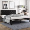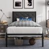 Home Beds Amolife Twin Size Metal Bed Frame with Upholstered Headboard, Dark Gray
