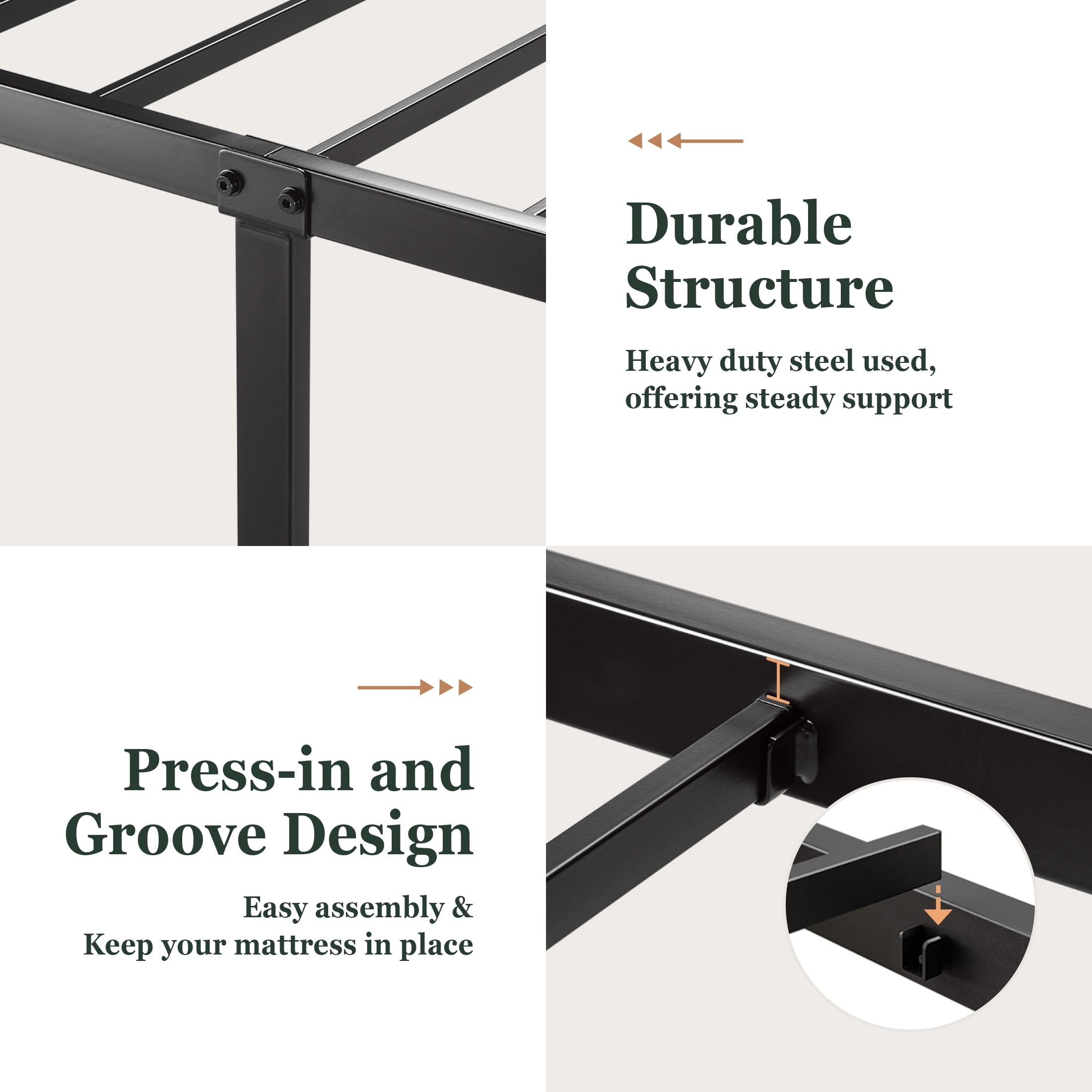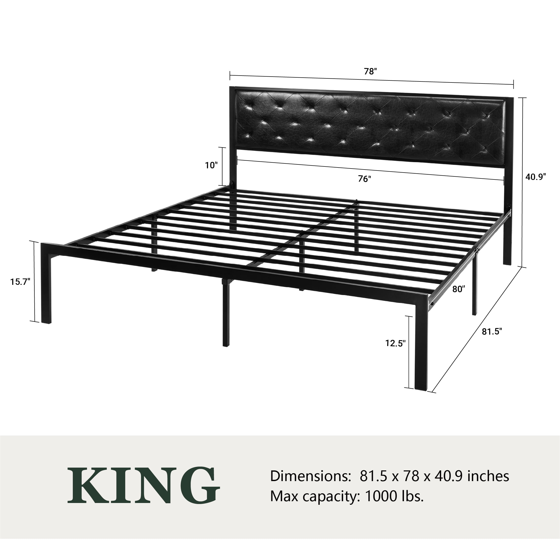 • Sturdy metal frame with 12 square metal slats and one reinforced square tube could stand up to 600~1000 lbs