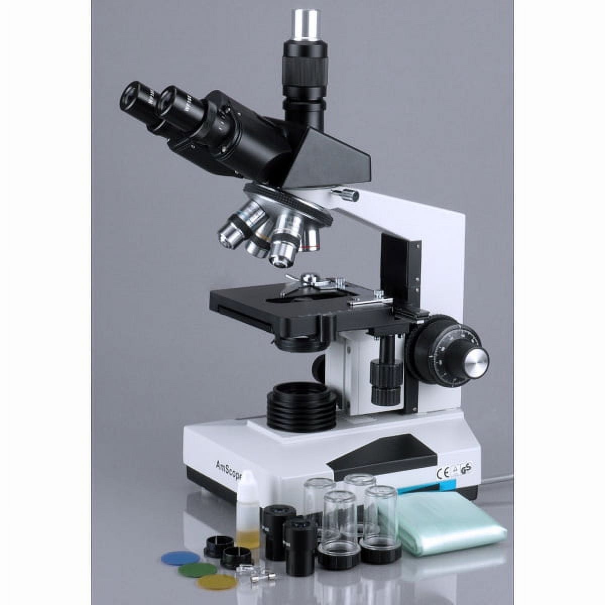 - 40X-2000X Simul-focal trinocular microscope offers eight widefield magnification settings