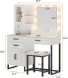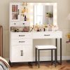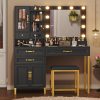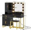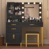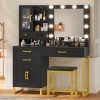 Makeup Vanity with Mirror, Modern Vanity Desk with Stool, Glass Top Drawer, Black Makeup Table with 10 LED Lights & Power Outlet