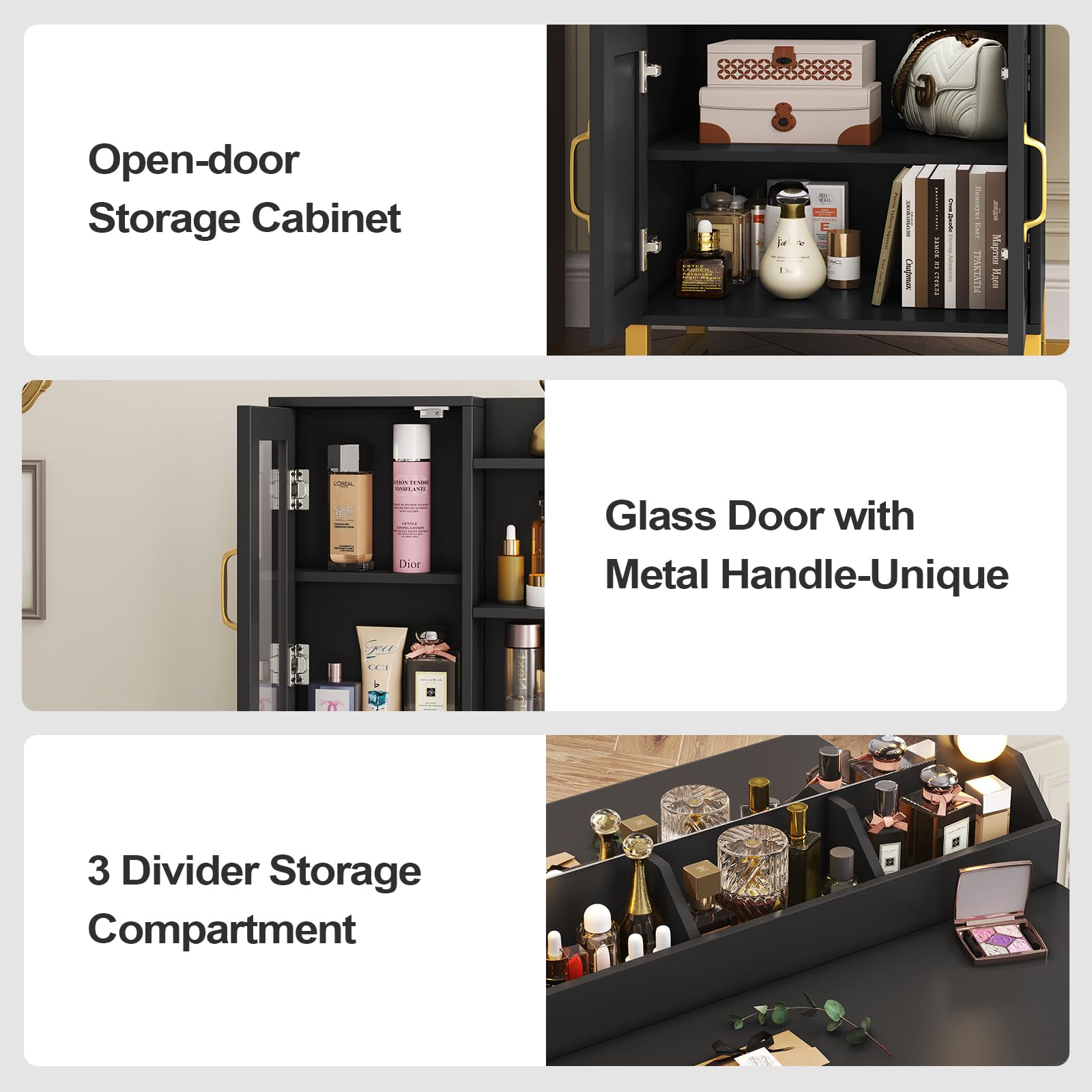 - Glass Door Cabinet,3 Open Shelves,3 Desktop Organizer for tidy organizing