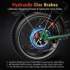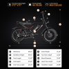 - Fat Tires (20″ x 4″) e bike: The fat tire electric bike design enhances stability and traction, making it suitable for rugged off-road trails, from snow to sand.