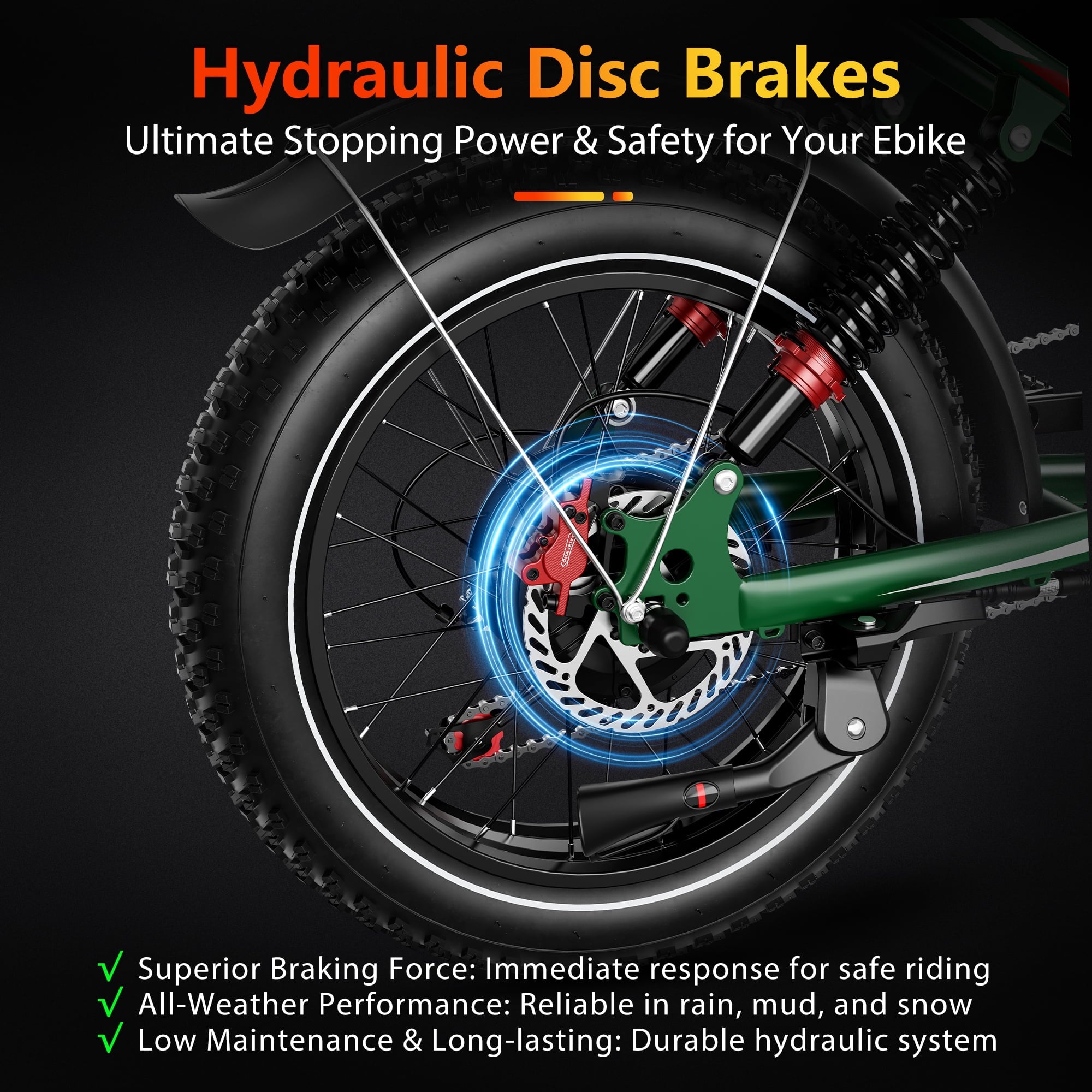- Hydraulic Disc Brakes: Front and rear hydraulic disc brakes deliver quick, smooth stopping power for safe riding in various conditions, including rain and off-road terrain.
