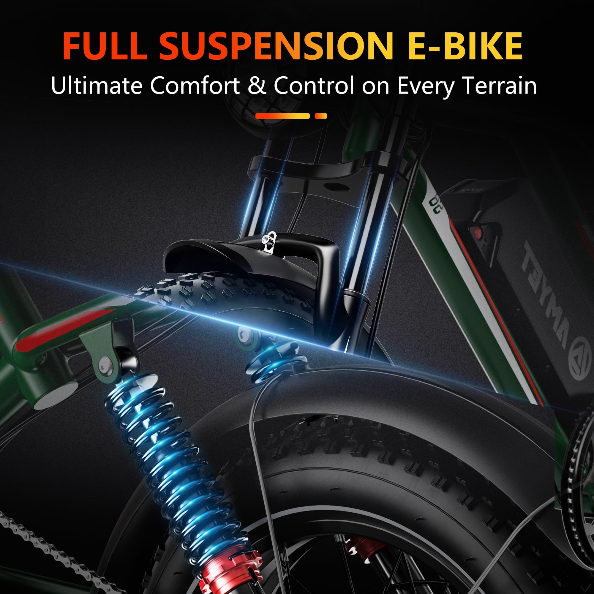 - Full Suspension: The high-strength suspension system with a lockable fork absorbs shocks, providing a smooth and comfortable ride on challenging off-road terrains.