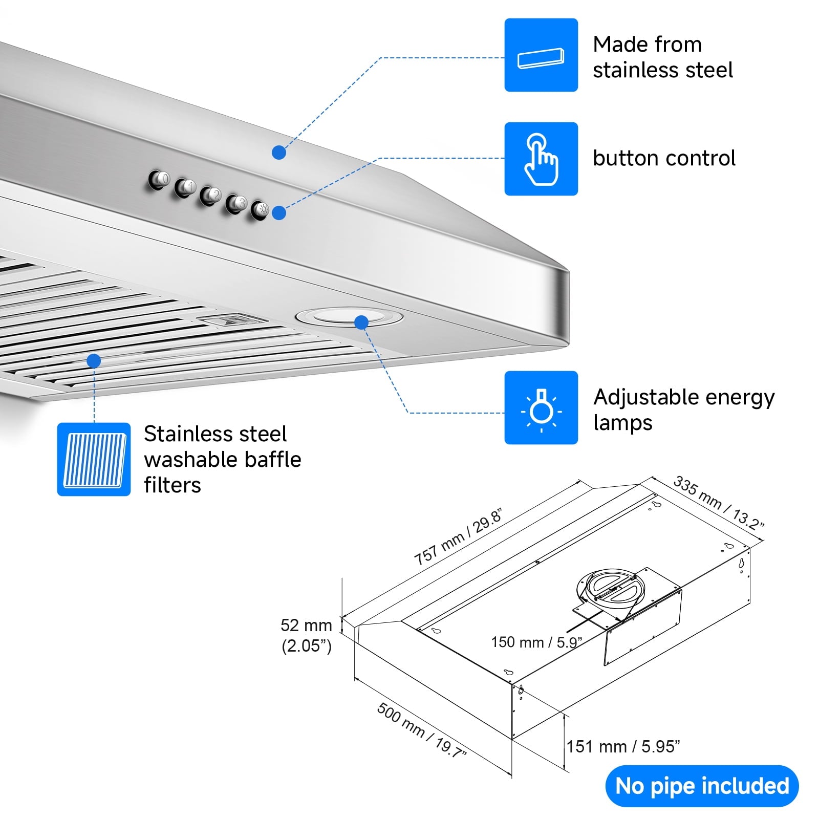 - Model: Under Cabinet Range Hood 30 Inch