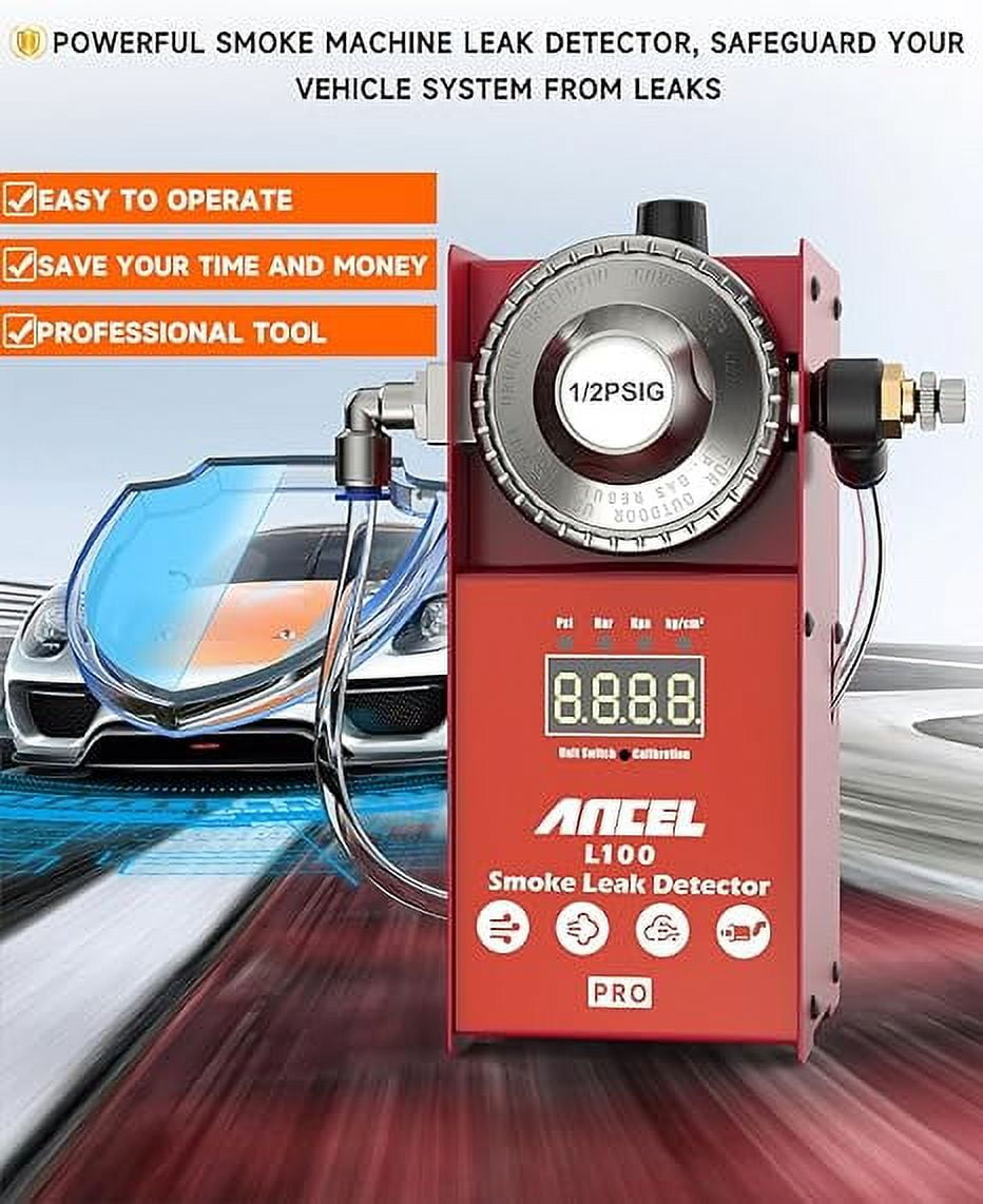 The ANCEL L100 Pro smoke machine detector is a more professional tool kit to find leaks for your car. Meet the smoke diffuser, Vapor disturbance pinpoints leak; No vapor disturbance indicates no leak.