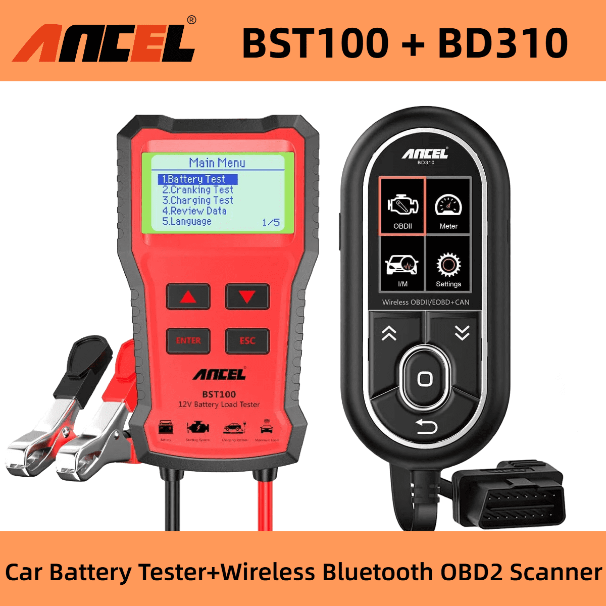 Ancel OBD2 scanner supports full OBDII engine modules test. The automotive code reader has handheld mode, bluetooth wireless mode. The obdii diagnostic tool combines with functions from regular portable OBDII Scanners and wireless Scanners. You can visit the graph, log, export real-time engine data through the free APP. Ancel battery tester is used for testing the conditions of the 12V lead-acid starting battery for cranking system and charging system. It comes with a large backlight LCD screen and it supports classic touch-tone to help you read and operate more efficiently. It utilizes the 4-wire Kelvin method to complete the collection of a series of complicated data for calculating every testing data with a build-in precise circuit and improved digital processor. Moreover, some circuit improvements including polar reversal protection, over-voltage input protection, and loose lead detection, ensure safety and convenience during testing.
