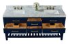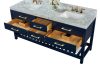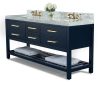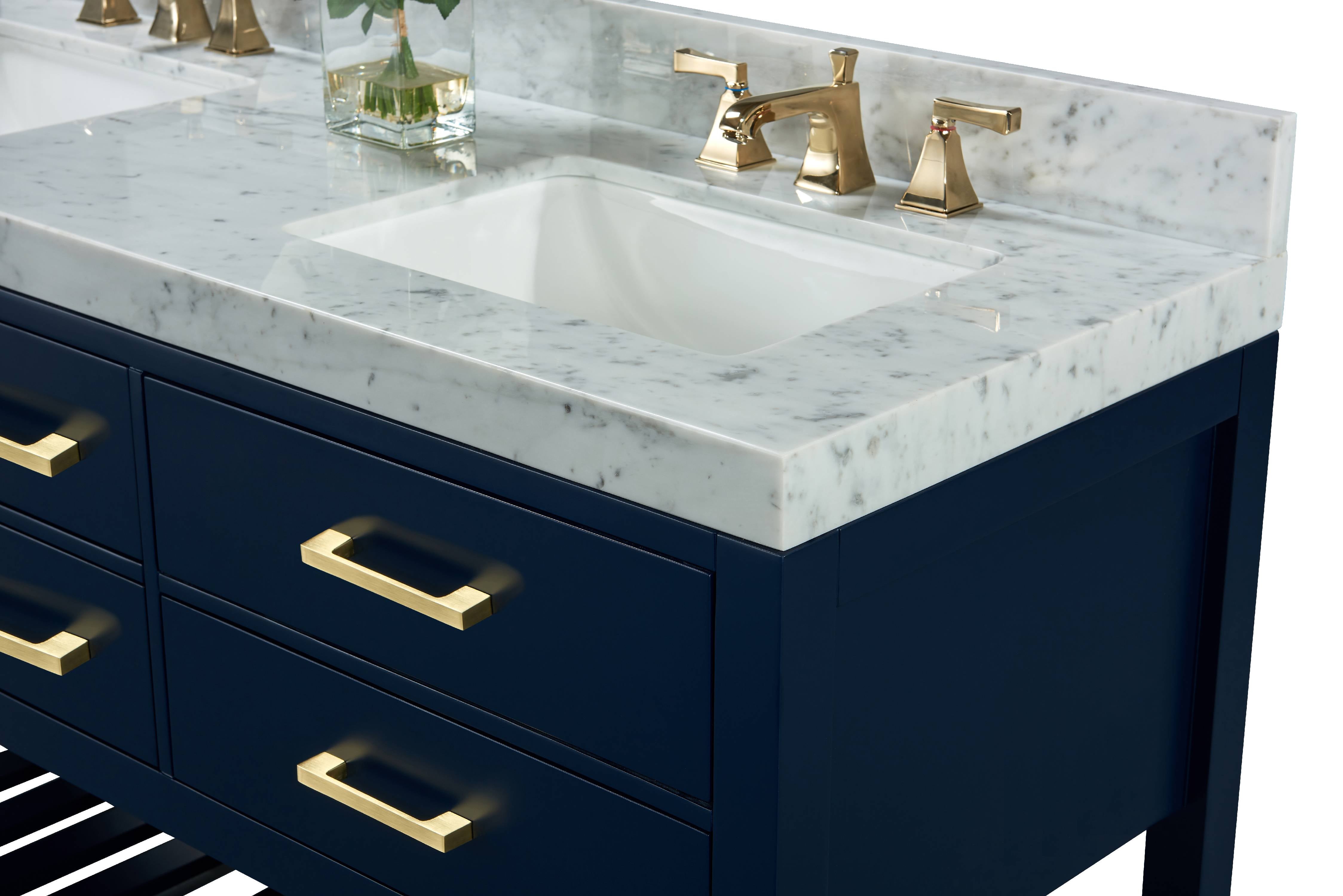 The Elizabeth Collection is a pure transitional design that brings balance & harmony to any space. From selecting quality wood to using the most durable soft-close hardware, no details were overlooked in crafting the Elizabeth 72 in. Vanity Set. The vanity set includes a furniture style cabinet, a thick imported Italian Carrara White marble top with a 4 in. backsplash, wide rectangular under mount basin, solid wood dovetailed drawer boxes, soft-close doors & drawers and gold finish hardware. Mirrors are sold separately (M-24-W).