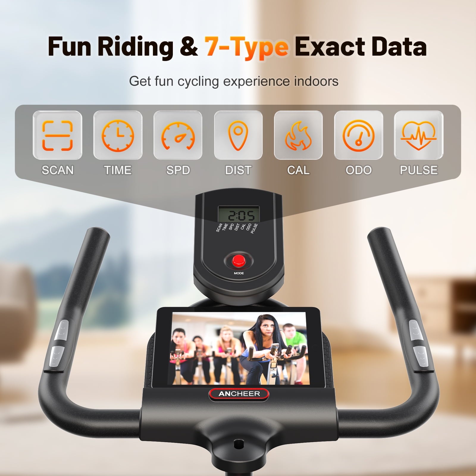 - [Customized Your Workout Plan] The monitor on our indoor cycling bike can capture your time, spd, dst, cal, odometer, and keep track of your exercise progress in real time. A dial tension knob to navigate the unlimited resistance levels makes you experience riding from the flat to the mountains. With a tablet holder you can watch exercise class on your Tablet