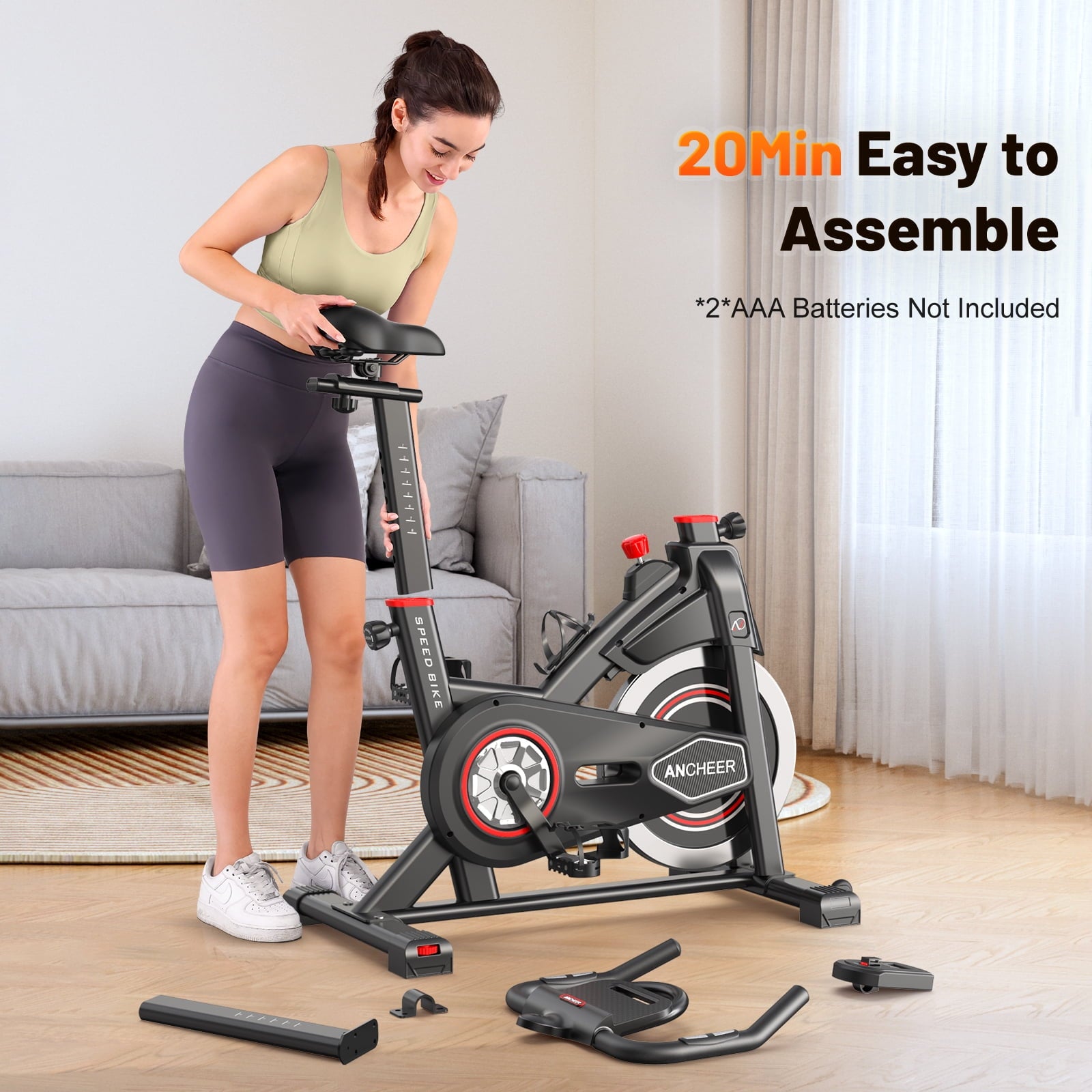 - [More Stable, Quiet and Smooth] Unlike the deceptive bikes online that are with a noisy iron sand flywheel, this indoor bike inertia-enhanced flywheel maintains a quiet smooth motion. Without the problem of a belt pulley breaking, a belt falling off, belt debris falling, the ANCHEER exercise bike uses ABS material belt pulley, industrial-grade bearings and upgraded Felt Pad Brake, making the bike more reliable and more suitable for shared spaces.