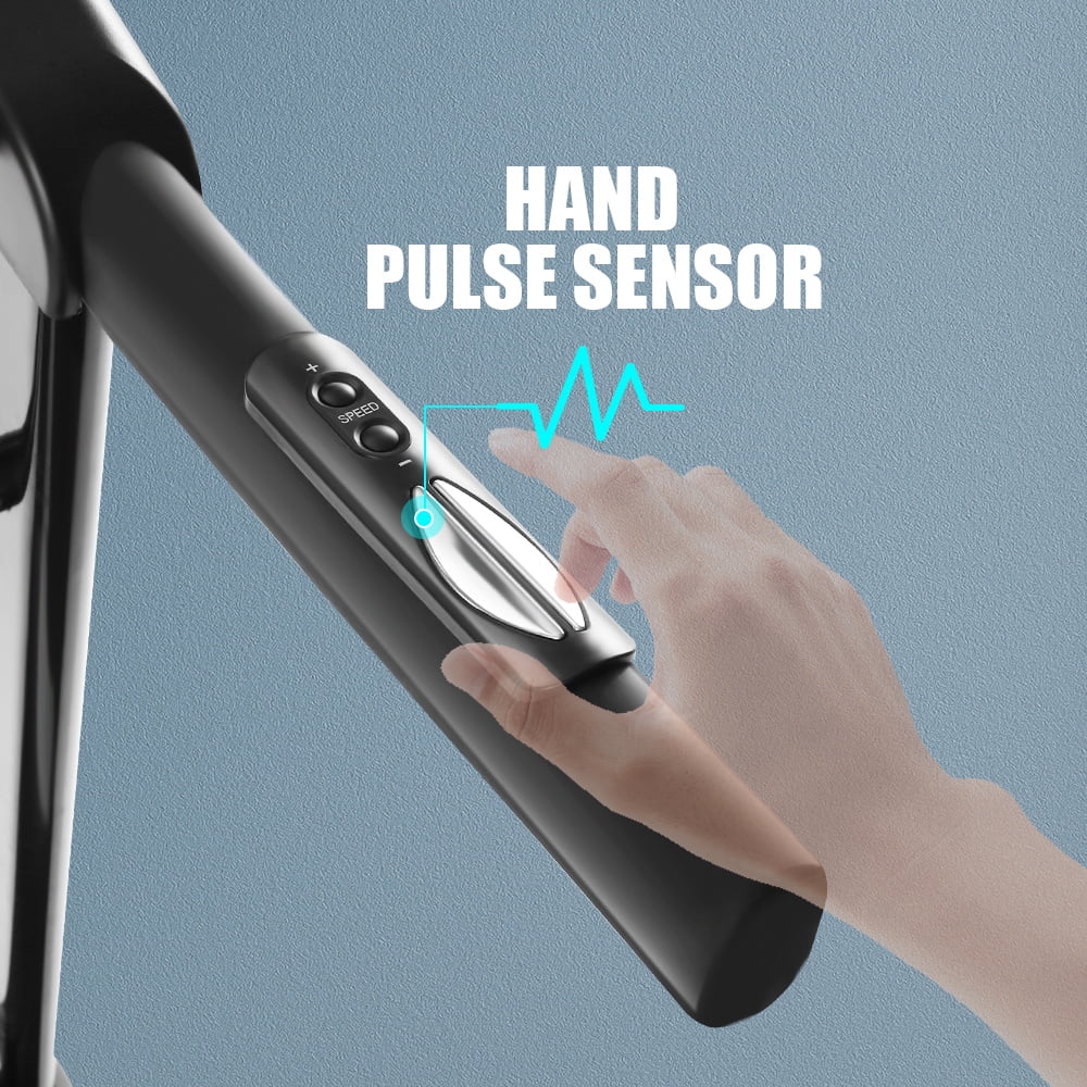 • ⦁【Heart Rate Sensor】The treadmill has a built-in heart rate sensor on the handle, while the handle buttons and touch screen make it easy to adjust speed, start and stop.