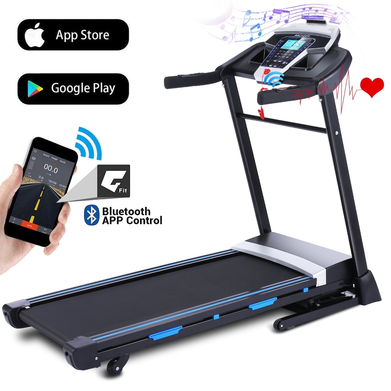 • ⦁Folding Treadmill with Bluetooth Connectivity
