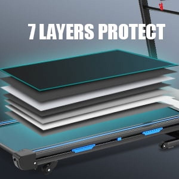 • ✔️【7-Layer Non-Slip Shock Absorbing Running Belt】: The shock absorption system is a key factor in treadmill design as it directly affects the protection of the knee joints during a long workout. Utilizing the cushioning principle of running shoes and the slow rebound properties of inert materials, the shock absorbing design of the treadmill instantly absorbs the impact and gradually releases it with each step, protecting the knee from any potential rebound injury.