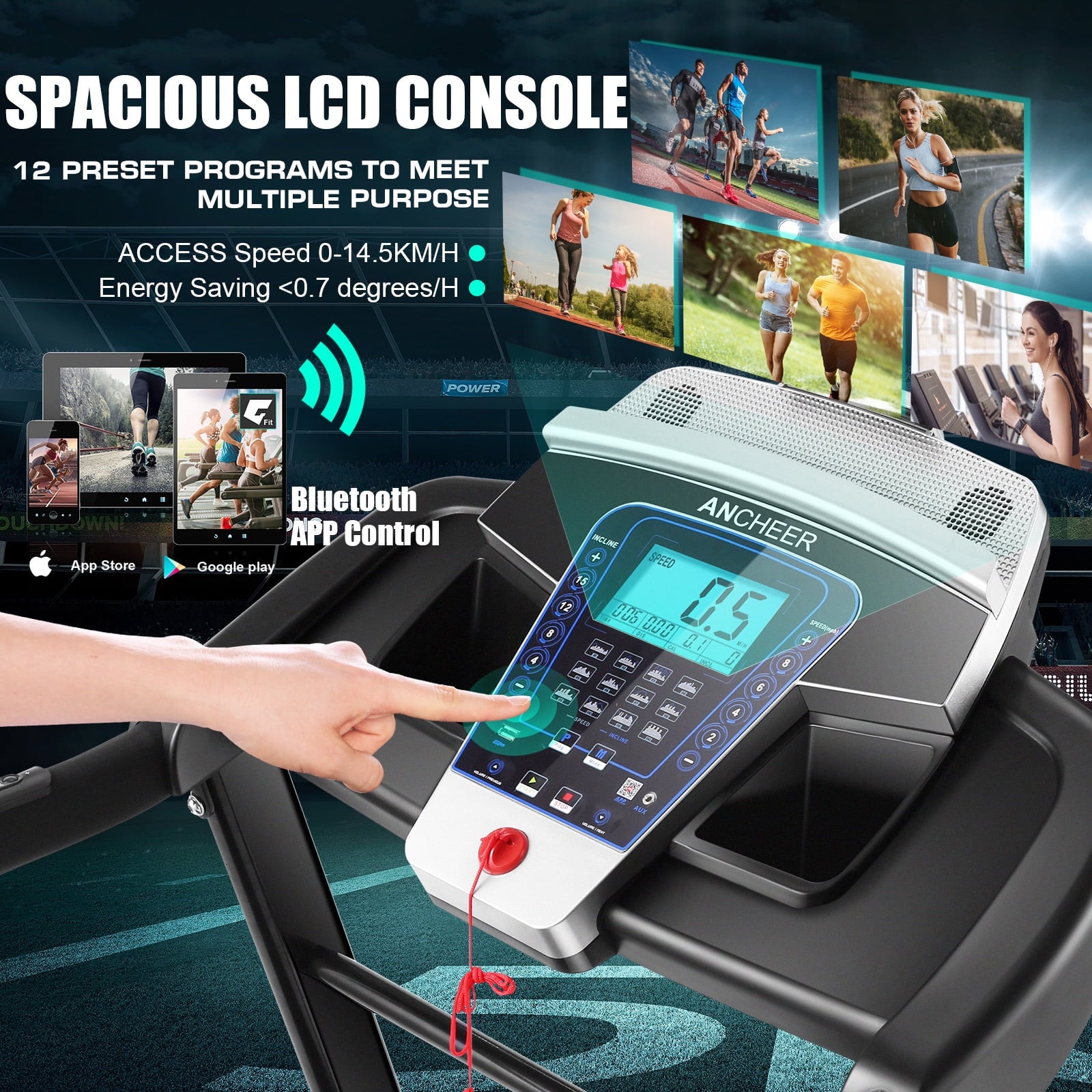 Home Exercise Treadmills ANCHEER Folding Treadmill with 15% Auto Incline,3.25HP Ultra-silent Motor, Speed Range of 0.6~10MPH,300lb Capacity, APP & Bluetooth Speakers,Treadmills for Home Running and Walking