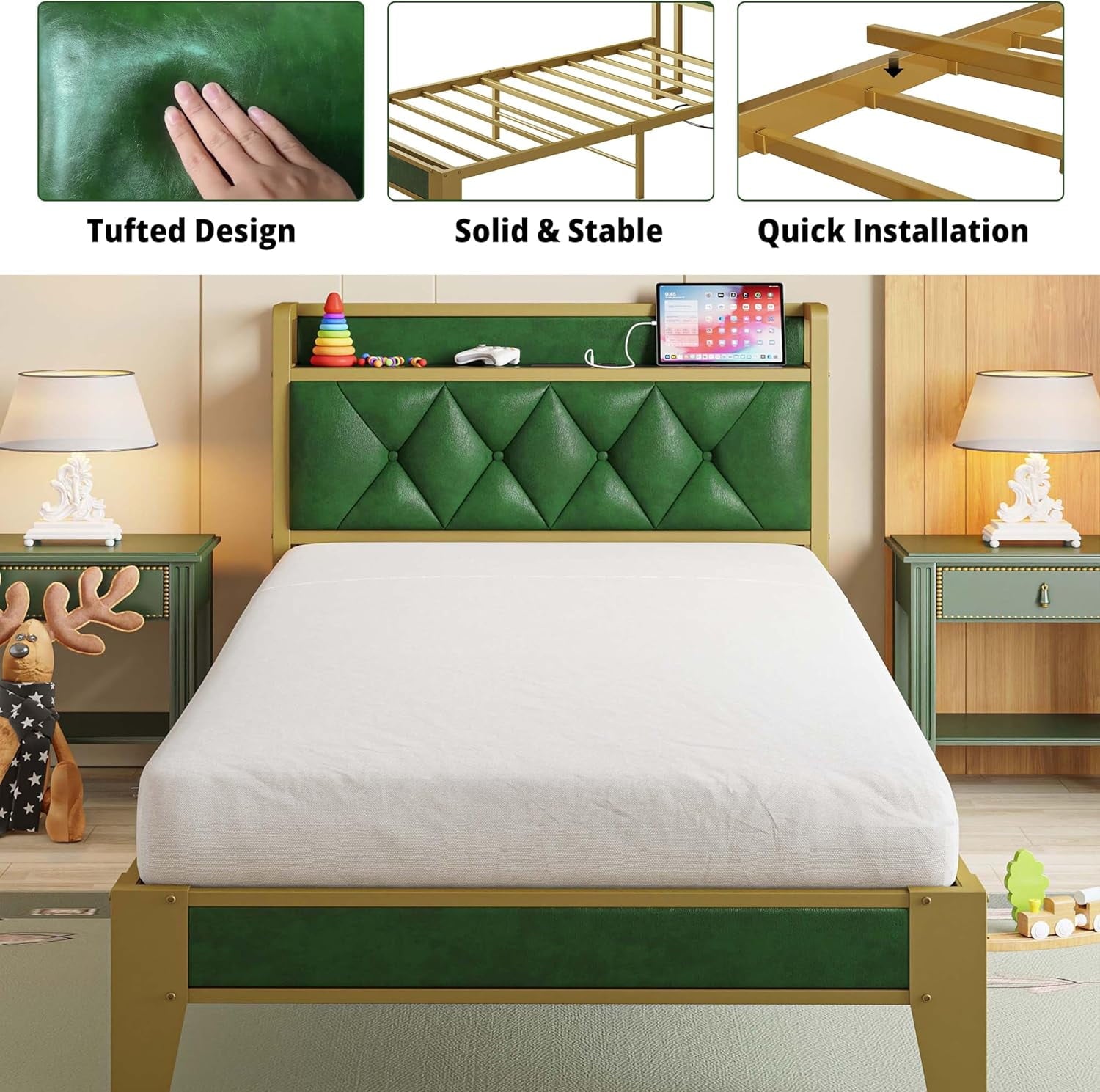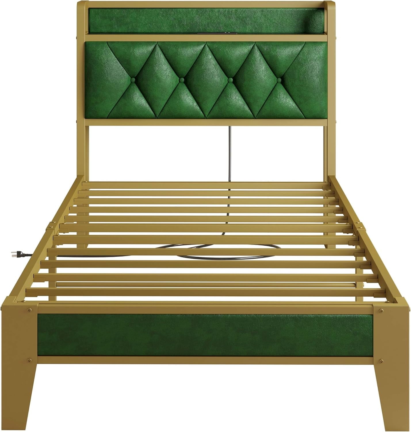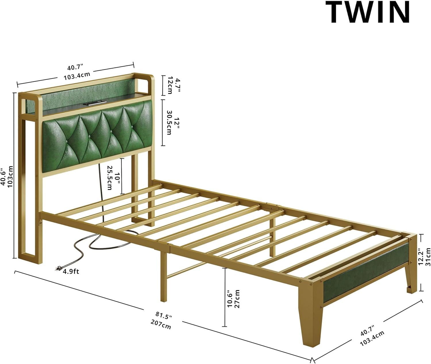 Home Beds ANCTOR Twin Bed Frames, Storage Headboard with Outlets, Easy to Install, Sturdy and Stable, No Noise, No Box Springs Needed, Emerald