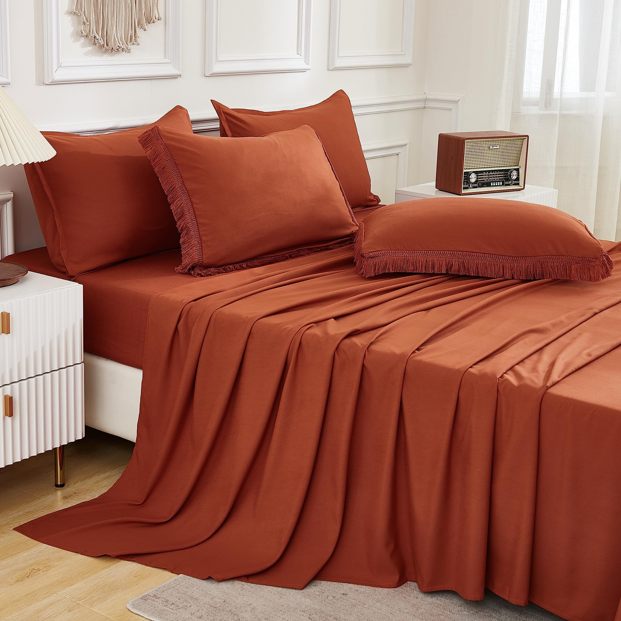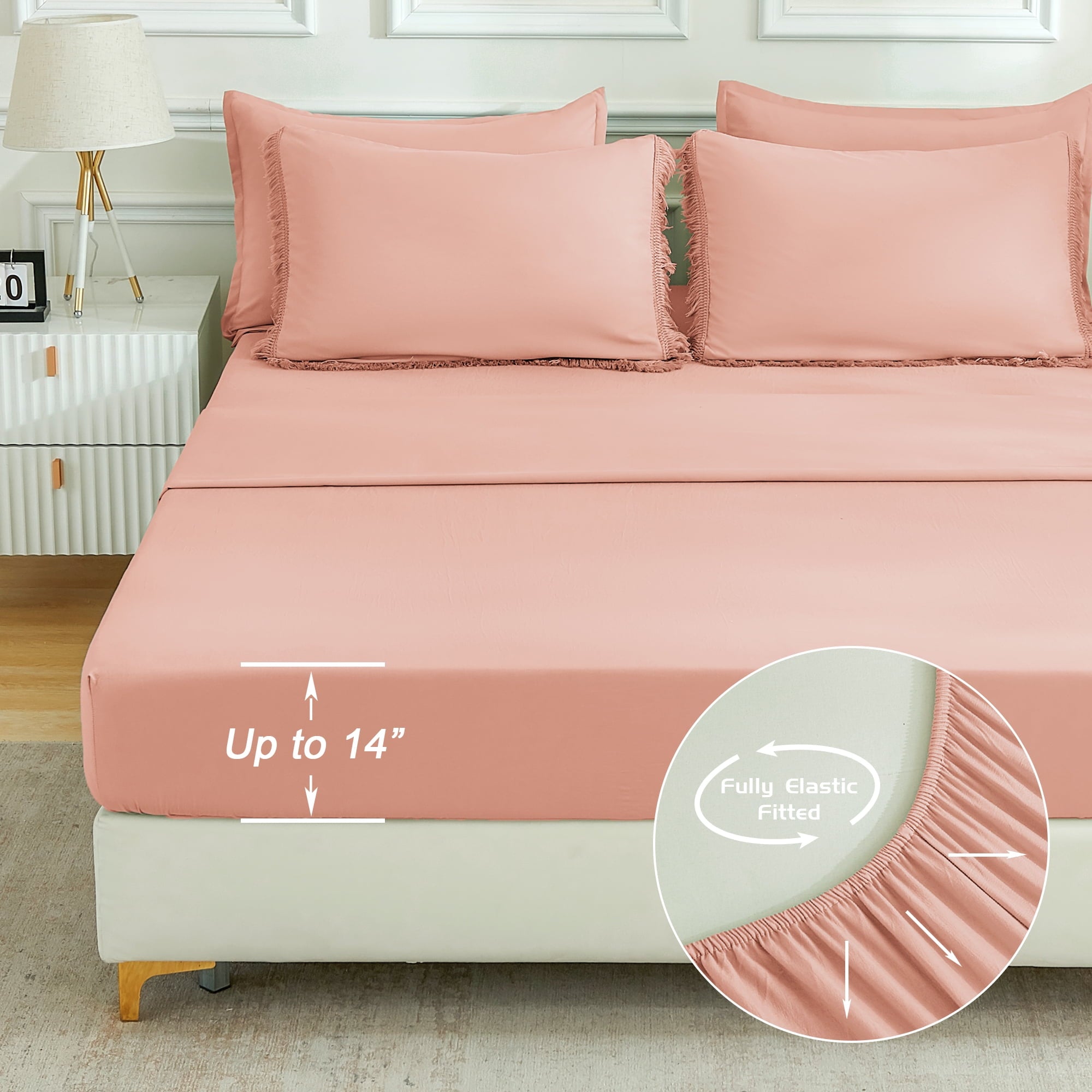 - Package Includes: The 7 pieces king size comforter set includes 1 comforter for king bed (104″x 90″), 1 flat sheet (108″x 102″) and 1 fitted sheet (78″x 80″+14″), 2 envelope pillow shams(20″x 40″) and 2 tassel pillowcases(20″x 36″). It also is an ideal gift for parents, friends, lovers and children in birthday, Christmas or other special holidays