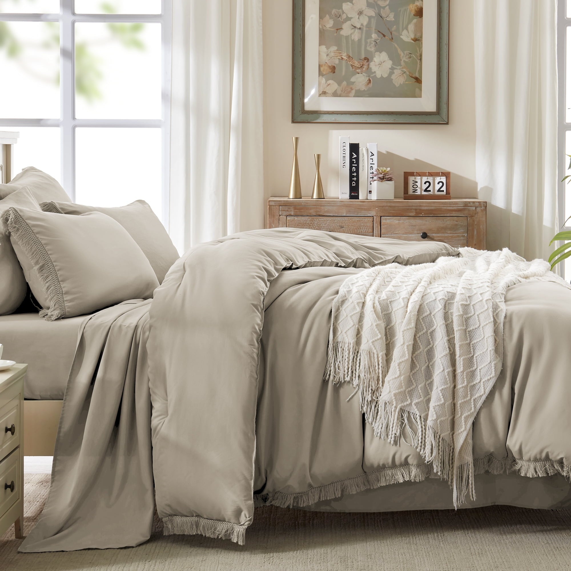 - Elegant Tassel Design: Our king size comforter set with bohemian tassels on the edge, is simple and stylish, adding an elegant touch to your bedroom. Each tassel is handmade, bringing you the enjoyment of visual