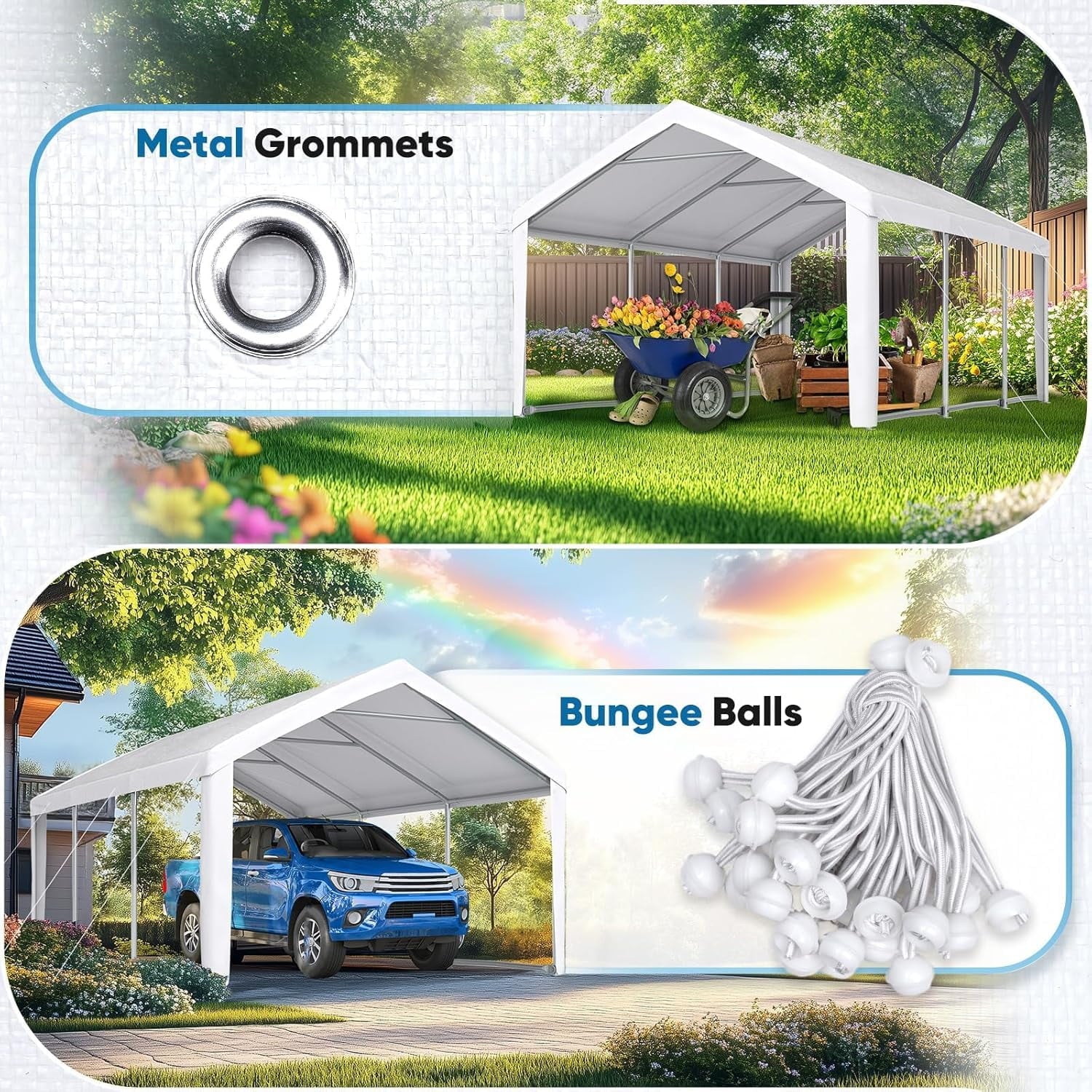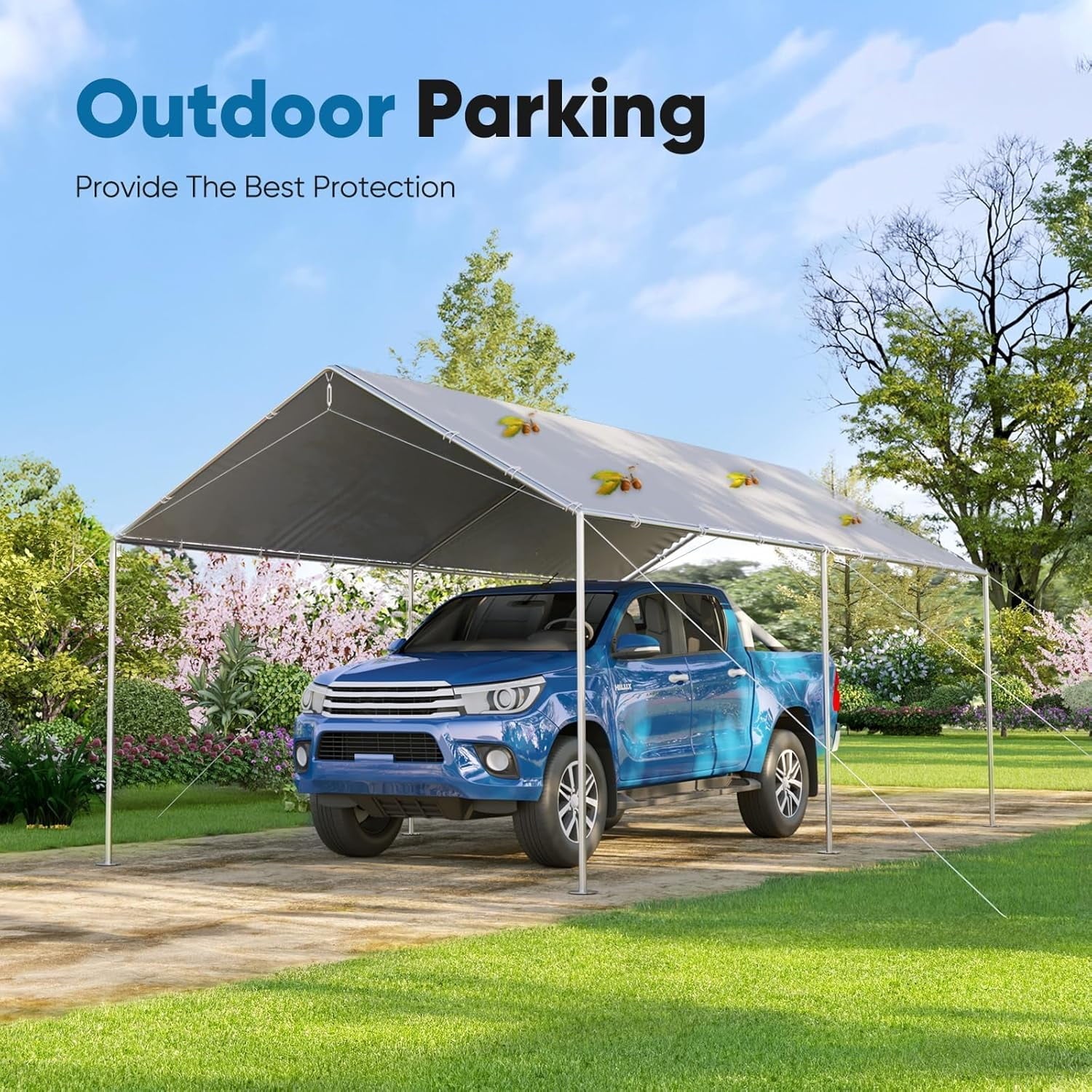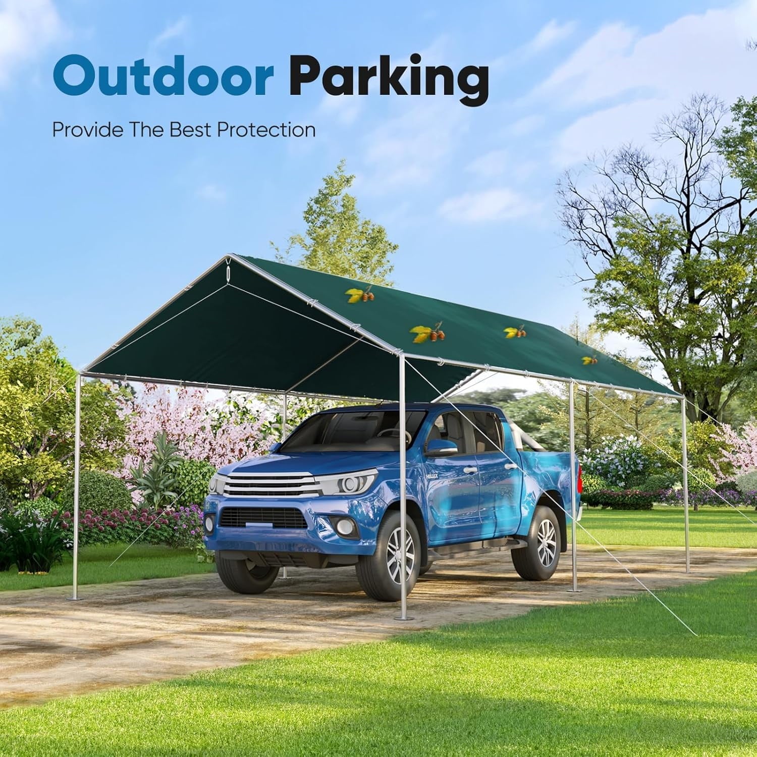 • 【Applicable】 The top canopy is suitable for any 10×20 ft size carport, without any restrictions on the edge or frame top angle