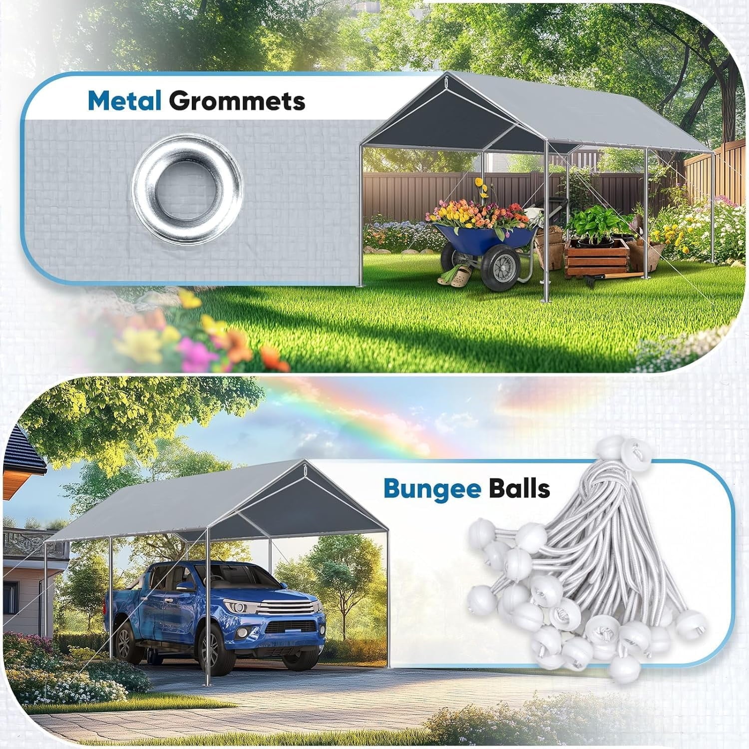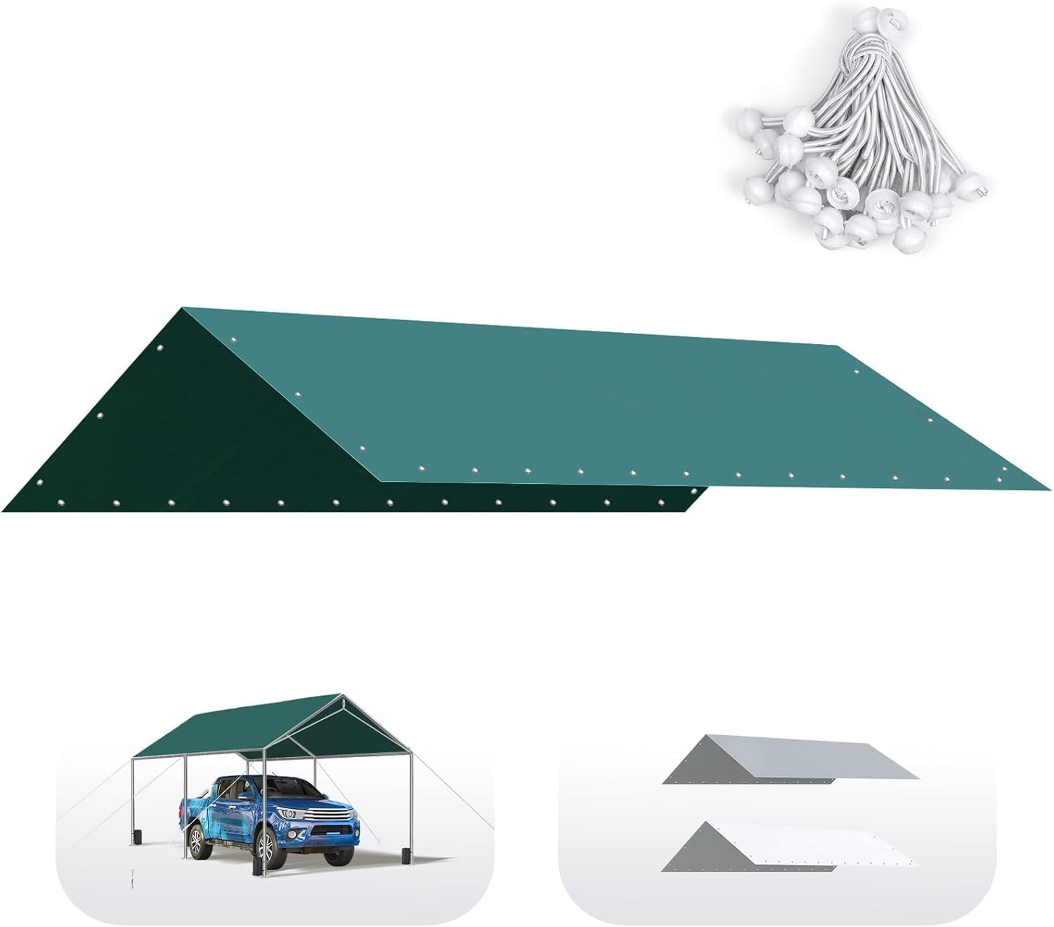 ANHXN Carport Replacement Tarp Canopy Top Cover with Bungees Balls, for Garage Party Tent Shelter , One Roof Only