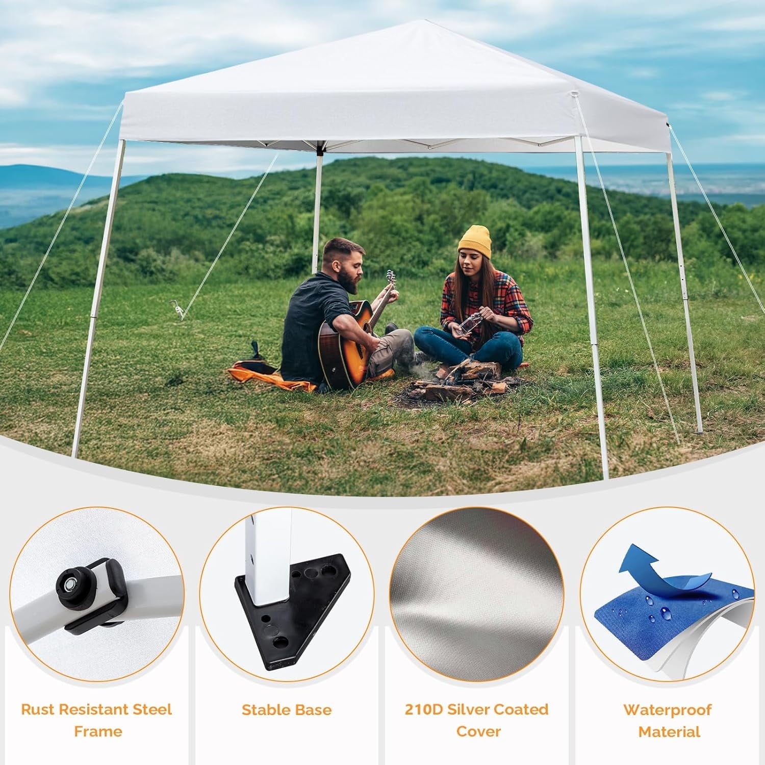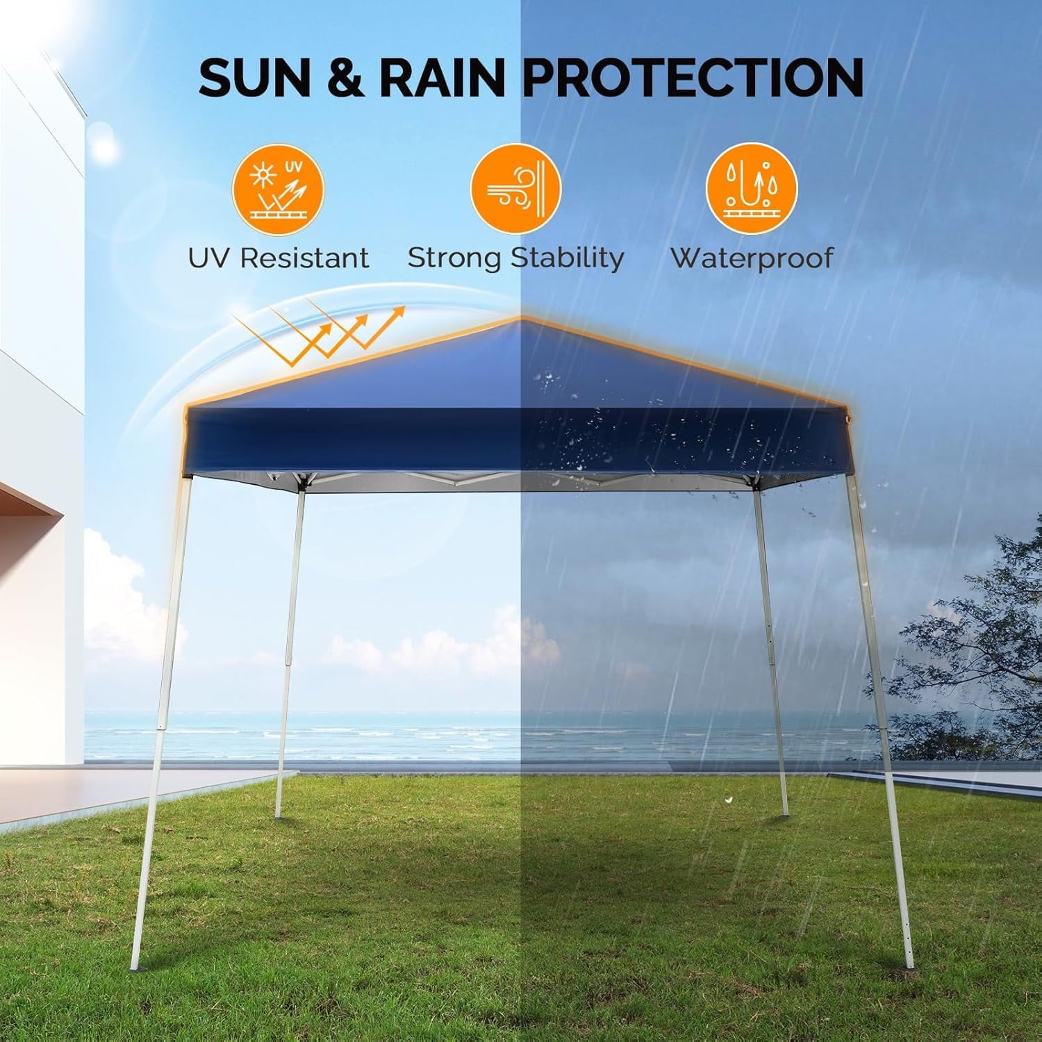 STRONG STABILITY – The party tent feature a high-quality steel top and a slanted leg frame, which not only enhances their strength and stability but also makes them more durable compared to traditional sheds