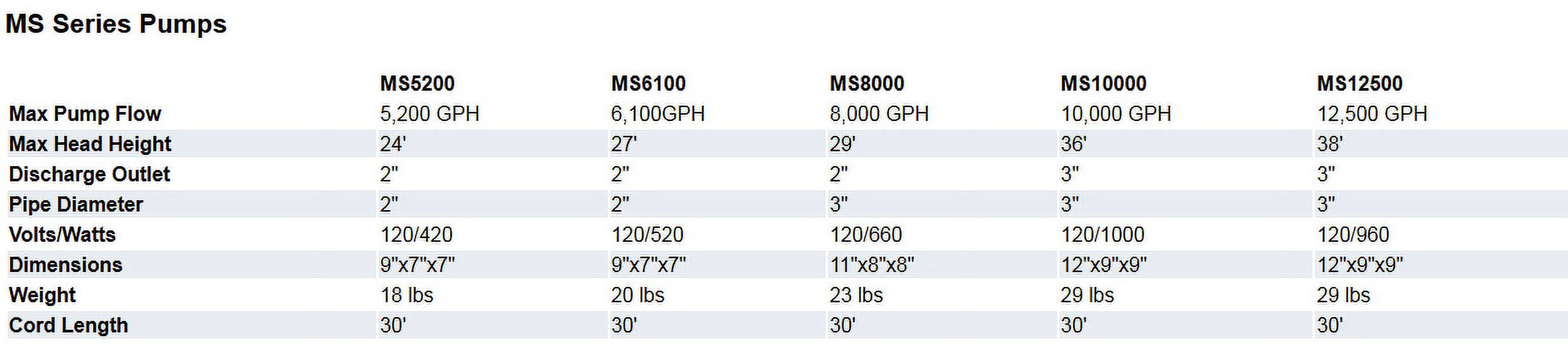 - 2-year manufacturer’s warranty: (The speed controller does NOT work with the MS10000, MS12500–(these two 30 foot cord models), (MS3000100, MS5200100, MS6100100, MS80001000, MS10000100, MS8000200, MS12500200, MS15000200–all 100 foot cord models)).