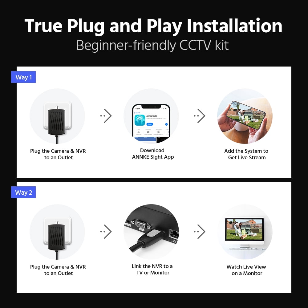 - 【DIY Plug & Play Setup】Simply plug the cameras & the NVR into an outlet & they will pair with each other automatically, no messy cabling, no installation hassles, that’s the way wireless it should be.