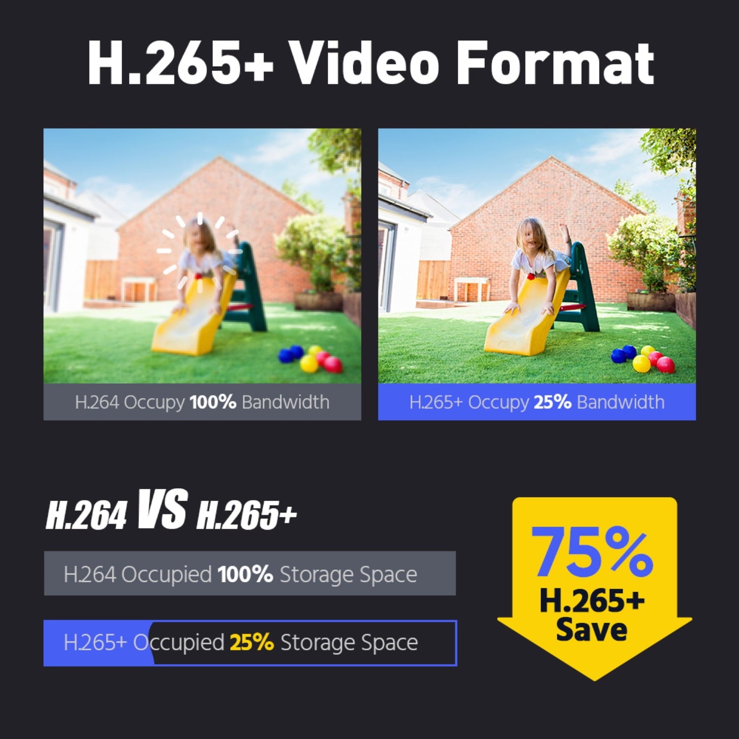 ★ Efficient H.265+ compression technology