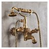 - Antique Brass Bathtub Shower Faucets Set Wall Mounted Bath Shower Set Swivel Tub Spout Bath Shower Dual Control Carved Mixer Tap