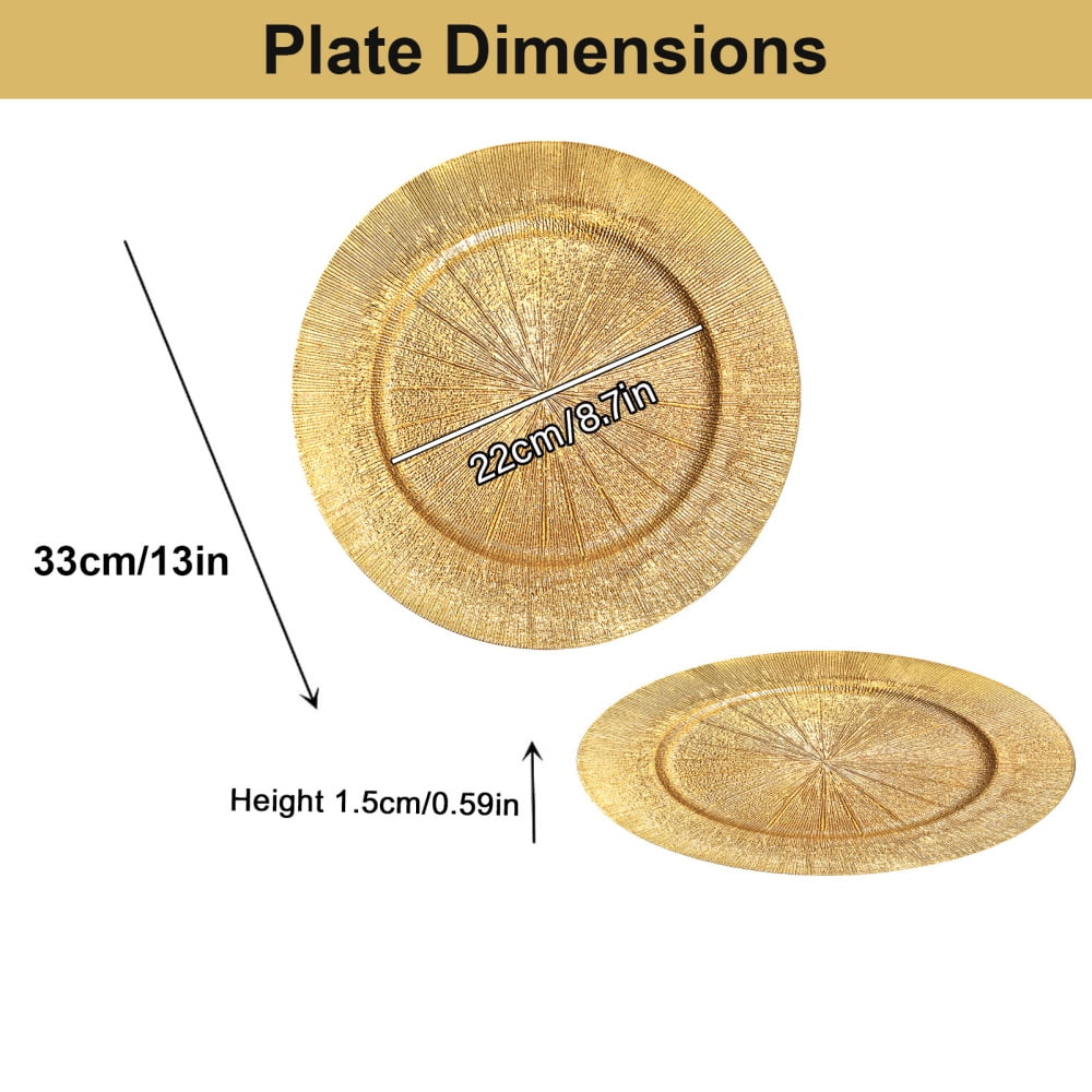 - Maintain a Clean Table: Our gold charger plates boast a wide edge design and suitable size that effectively prevents food spillage, making each dinner party esay. Each plate is approximately 13 inches in size and also increases stability and practicality