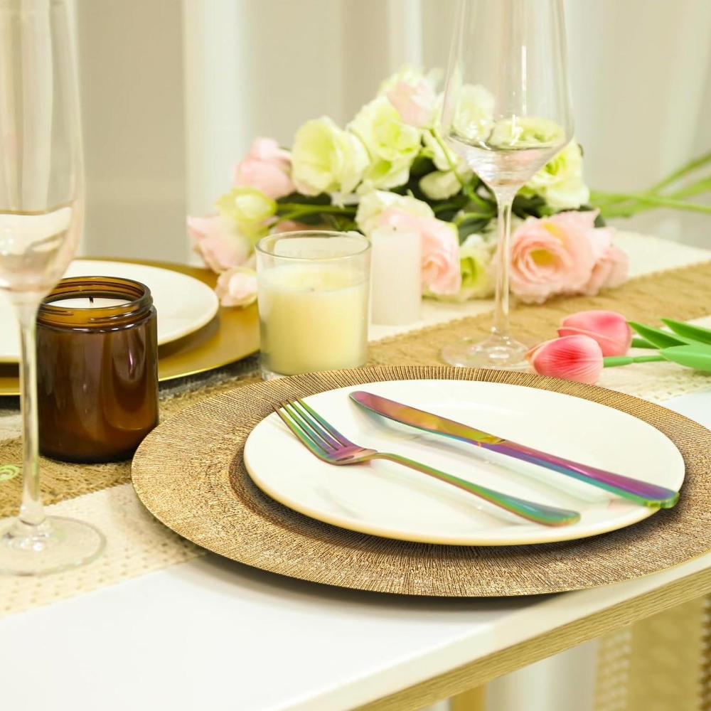 - Convenient Maintenance: With easy-to-clean gold charger plates, wipe away any messes with a damp cloth. These plates are crafted for easy use and are sturdy, adding elegance to any setting. They can also be stored at room temperature