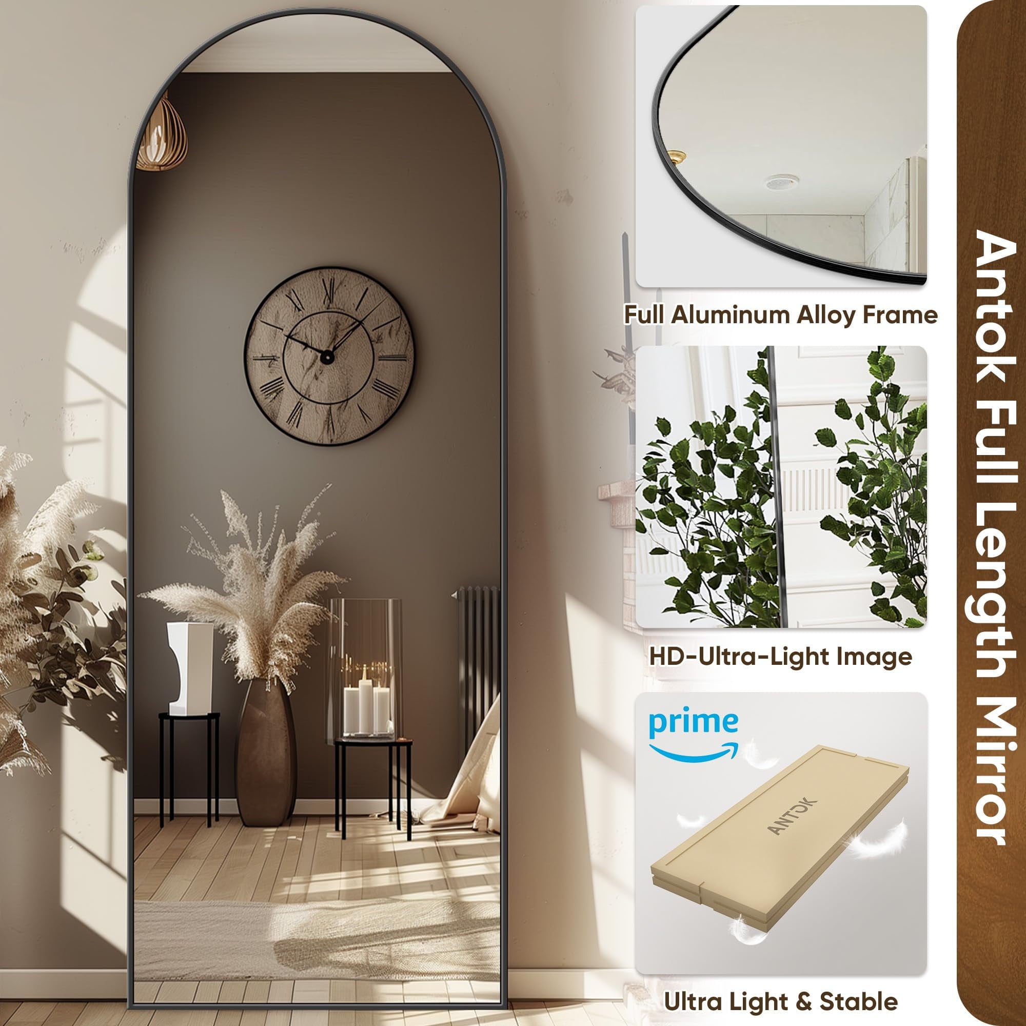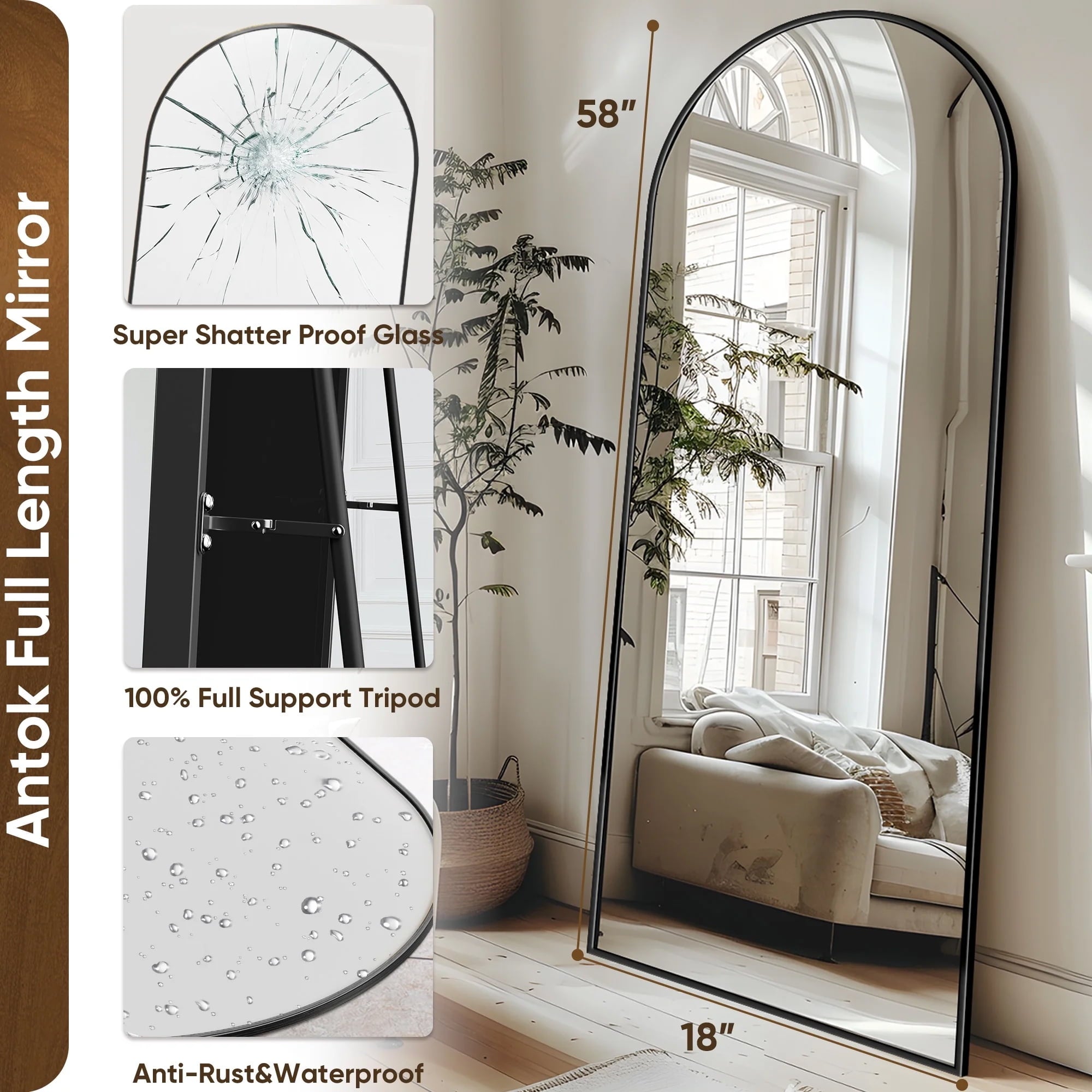 The Antok Arched Full-Length Mirror combines functionality with stylish decor, designed to elevate your daily routine. Our large full length mirror ensures a complete head-to-toe view.