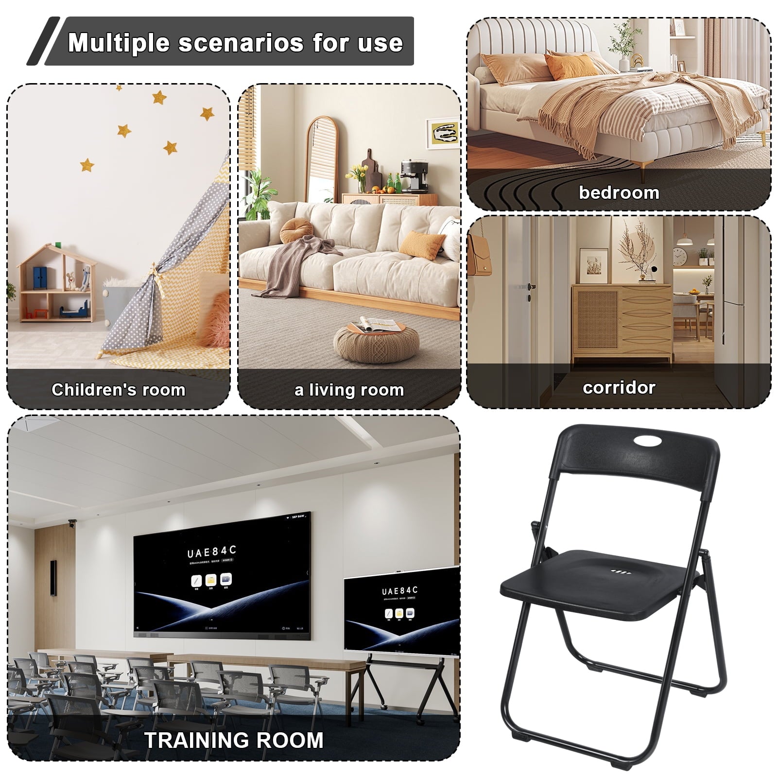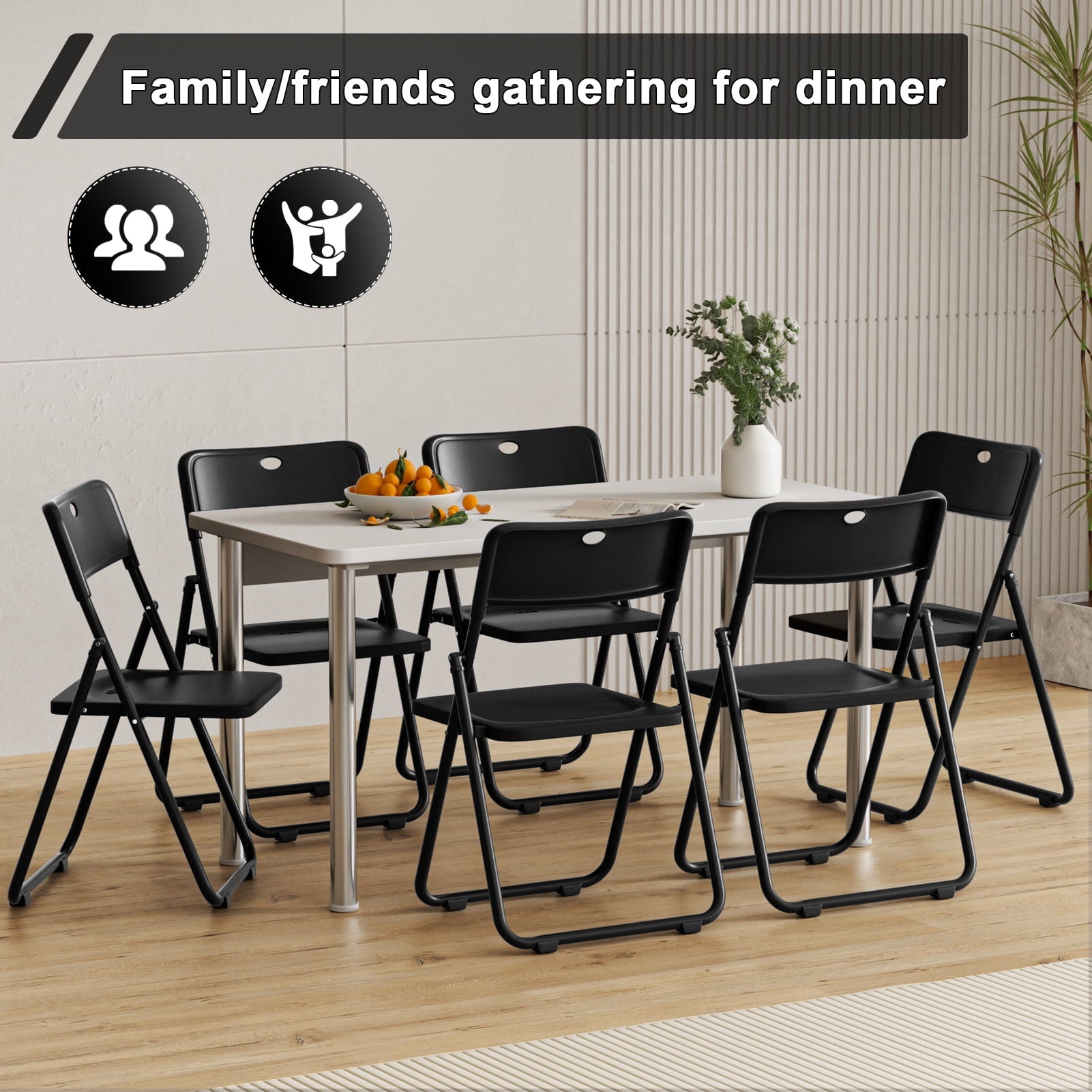 6 Pieces Included: Set of 6 folding chairs in black for extra seating; ideal for everyday use or special events.