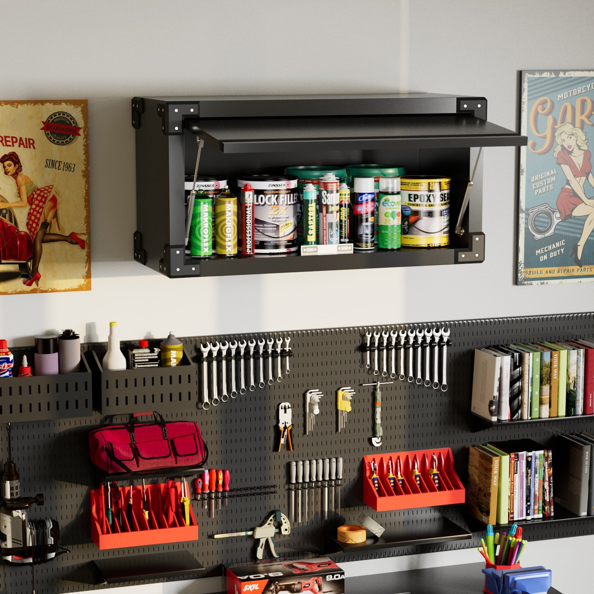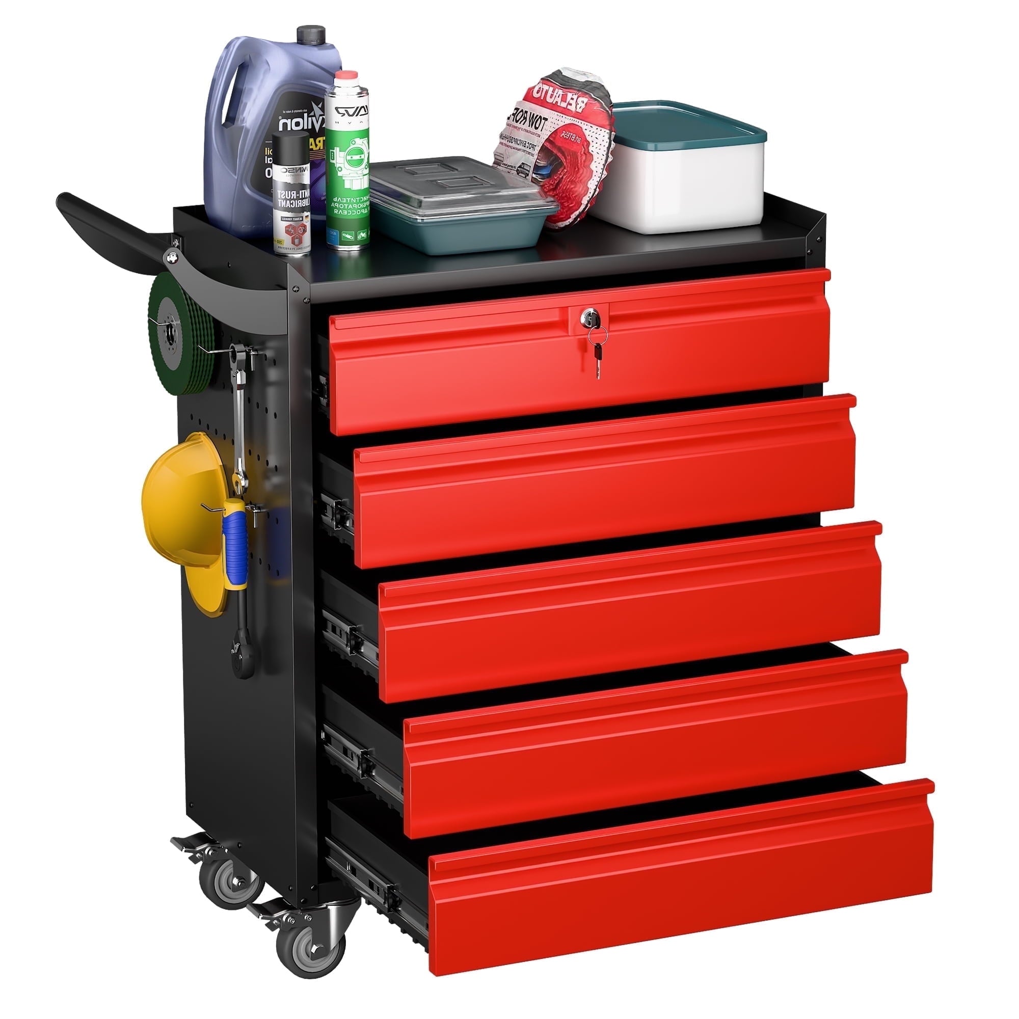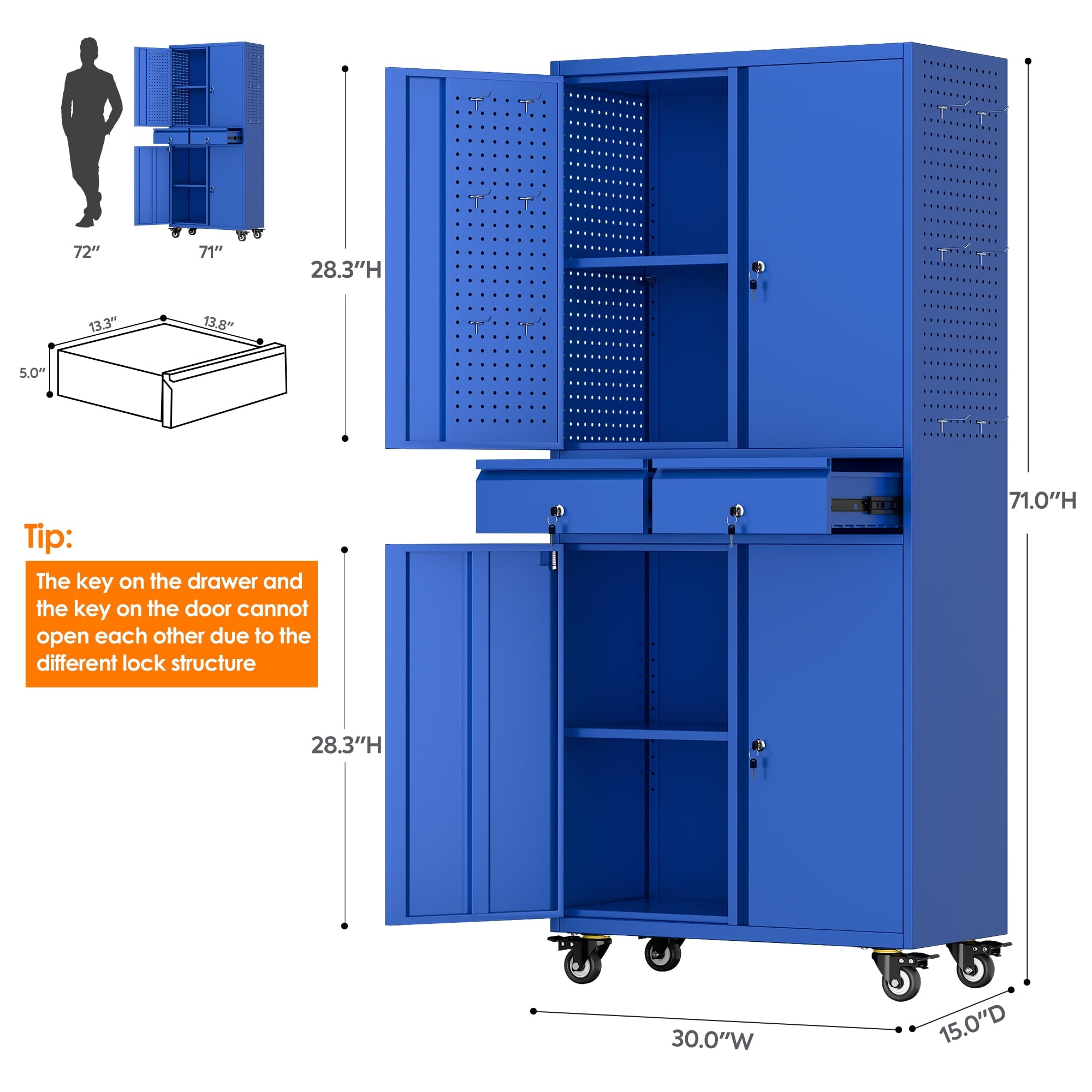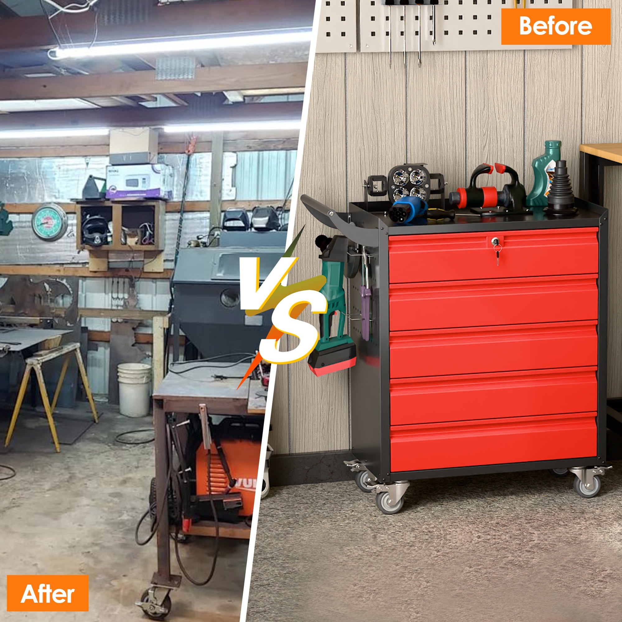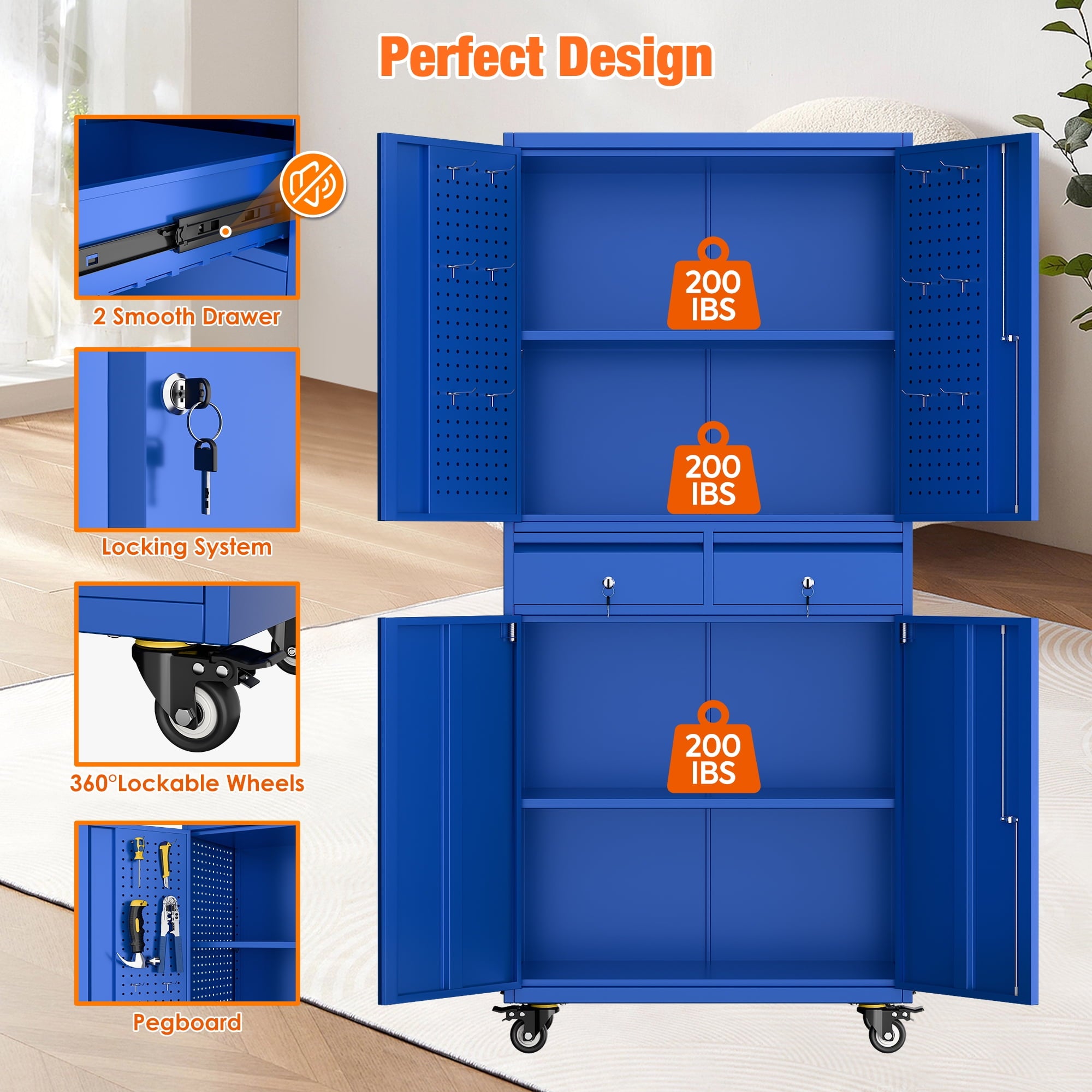 - [Select High-Quality Steel] Garage storage cabinet with wheels is made of cold-rolled steel. The reinforced structural design and high-quality metal materials provide the garage cabinets with good stability and load-bearing capacity.
